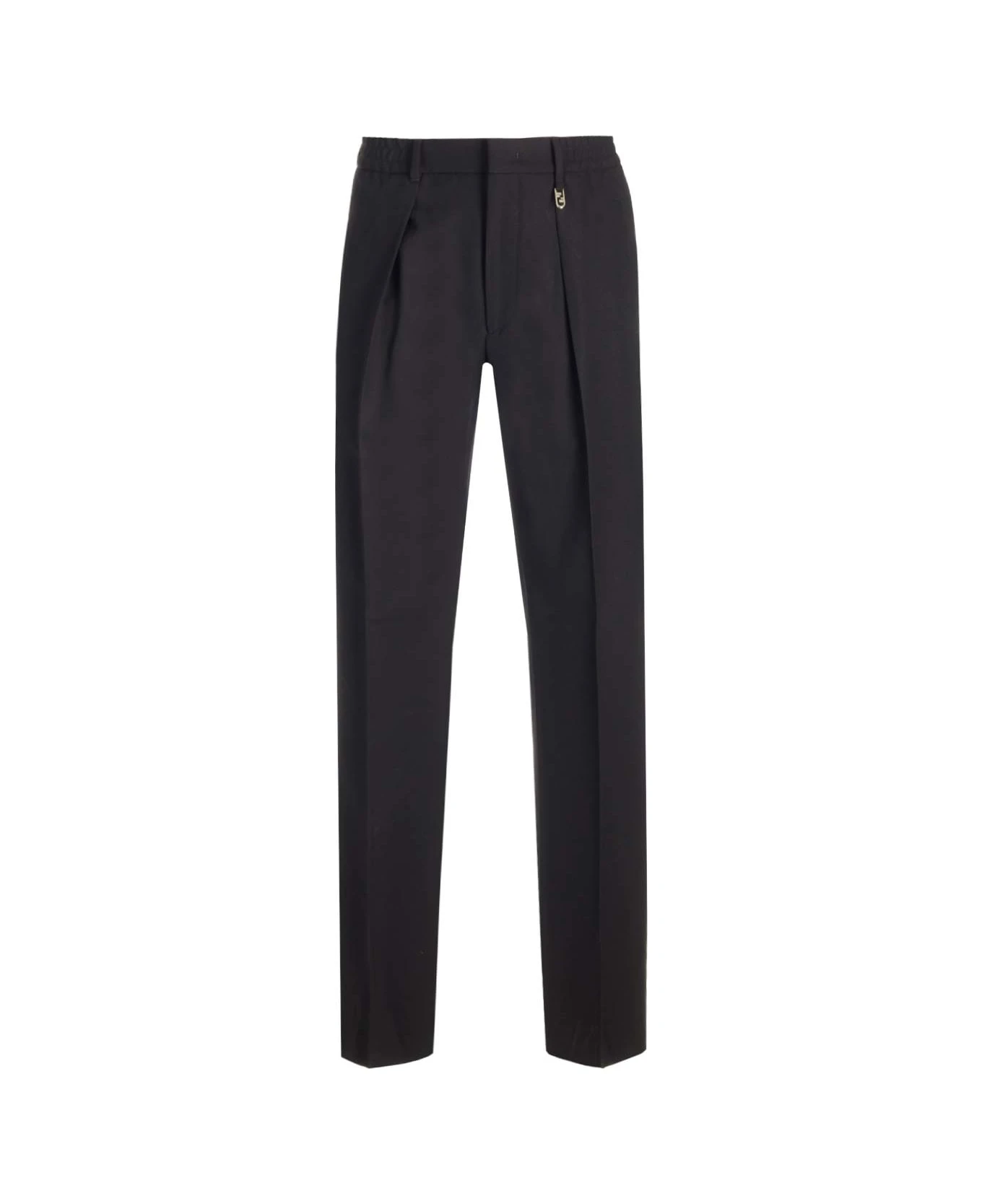 Black trousers from Fendi in wool cr , straight fit with darts on the front, side elastic inserts at the waist, welt pockets on the sides, covered zip closure, finished with a metal plate on the belt loop.