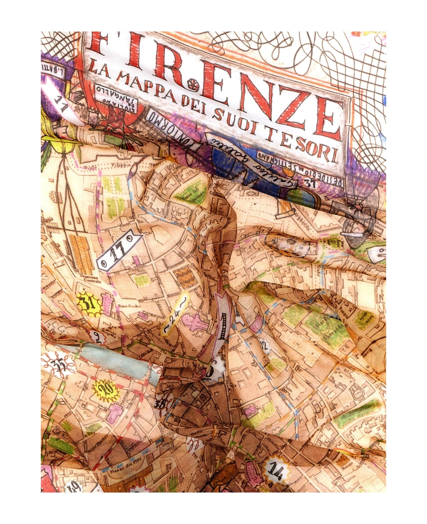 ‘Florence’ modal and cashmere scarf with all-over print and fringed edges.