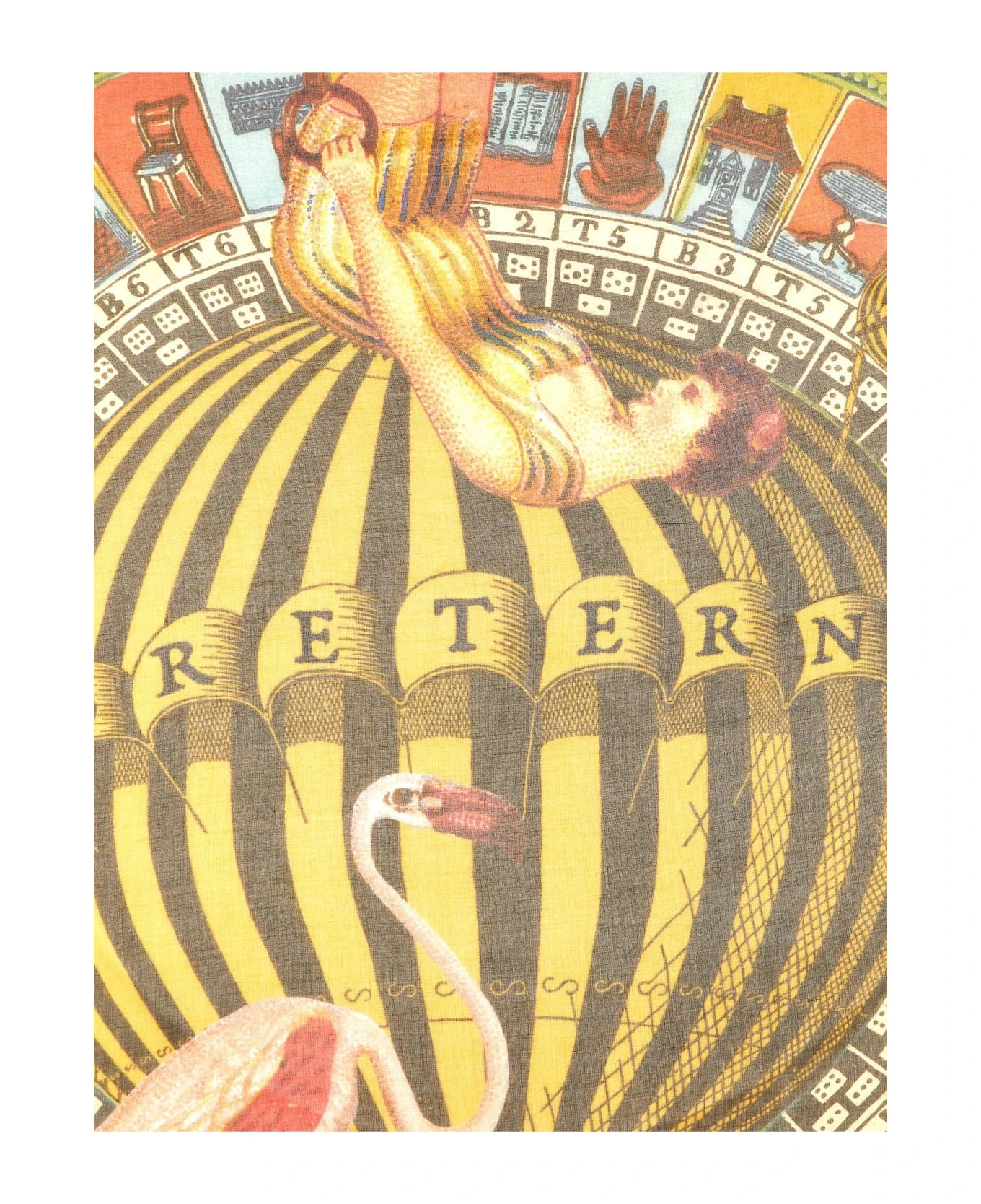 ‘Mongolfiera’ modal and cashmere scarf with all-over print and fringed edges.
