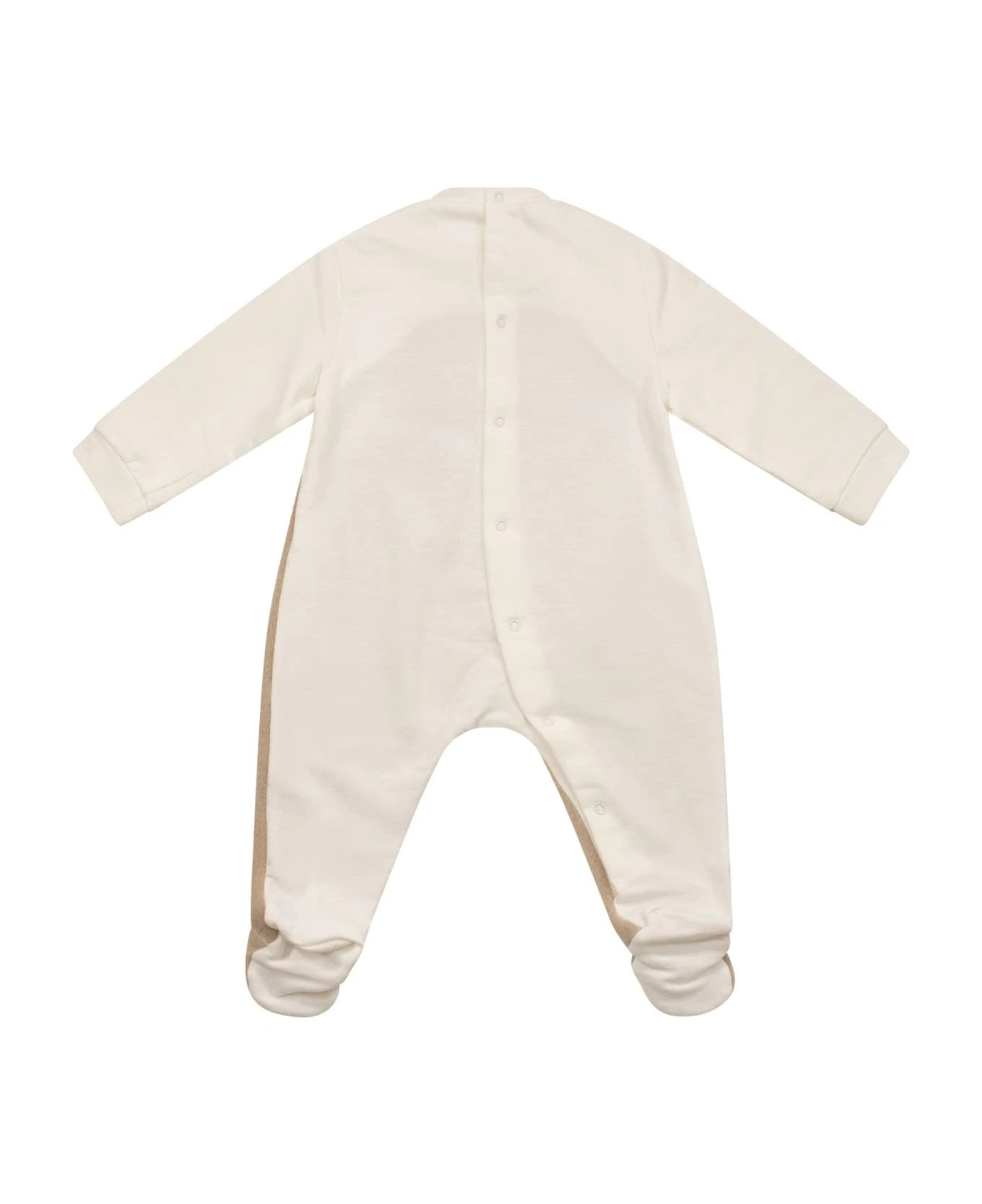 Stretch fleece baby footed sleepsuit with front insert of a funny beaver with embroidered snout in soft beige fleece. – Back opening with practical press studs – Contrasting embroidered Il Gufo logo DESIGNER ID: A23TP335M0100. 1012