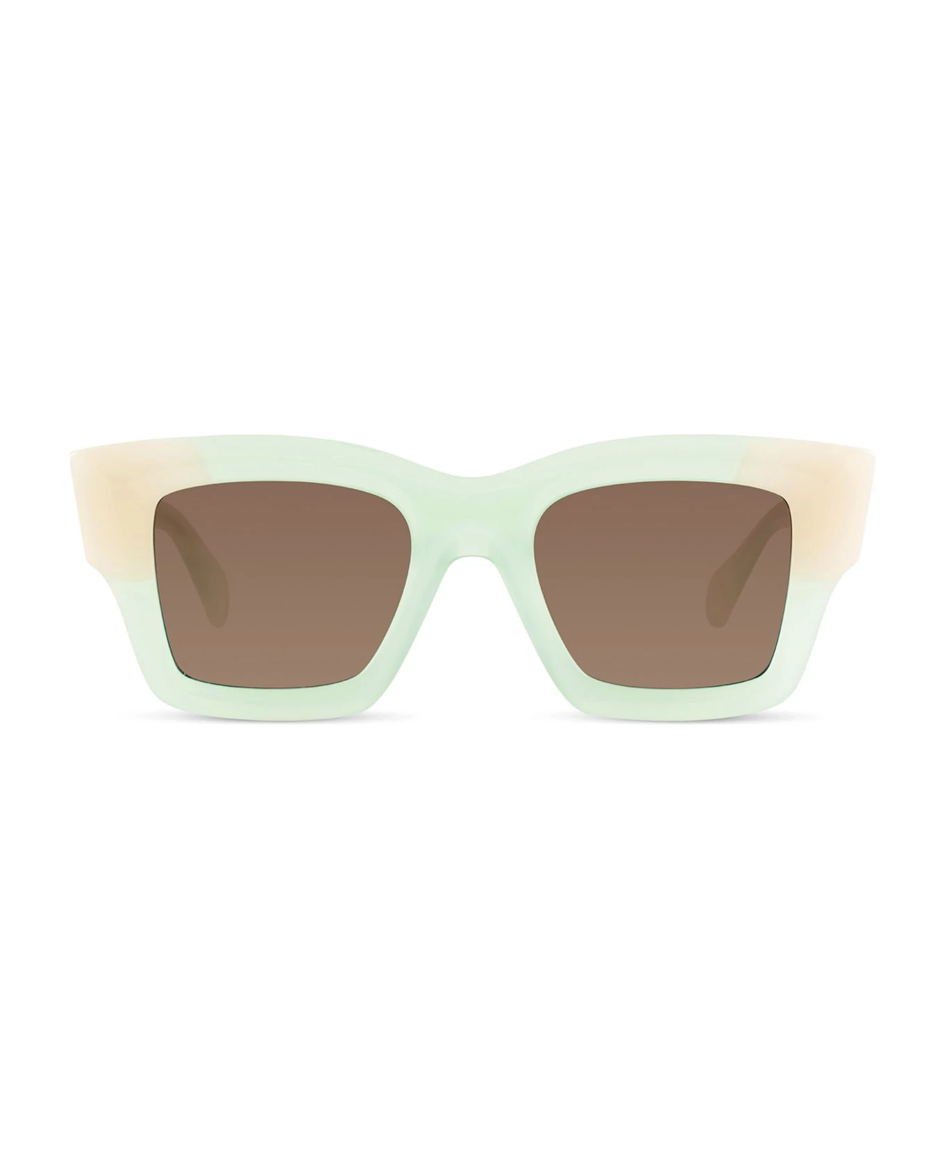 Jacquemus sunglasses Les Lunettes Baci Light Green feature a D-frame contrast acetate with translucent body with opaque tips, engraved logo on the temple and 100% UV protection.