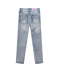 Chiara Ferragni Light Blue Five Pockets Jeans With All-over Logo Patch In Stretch Cotton Denim Girl