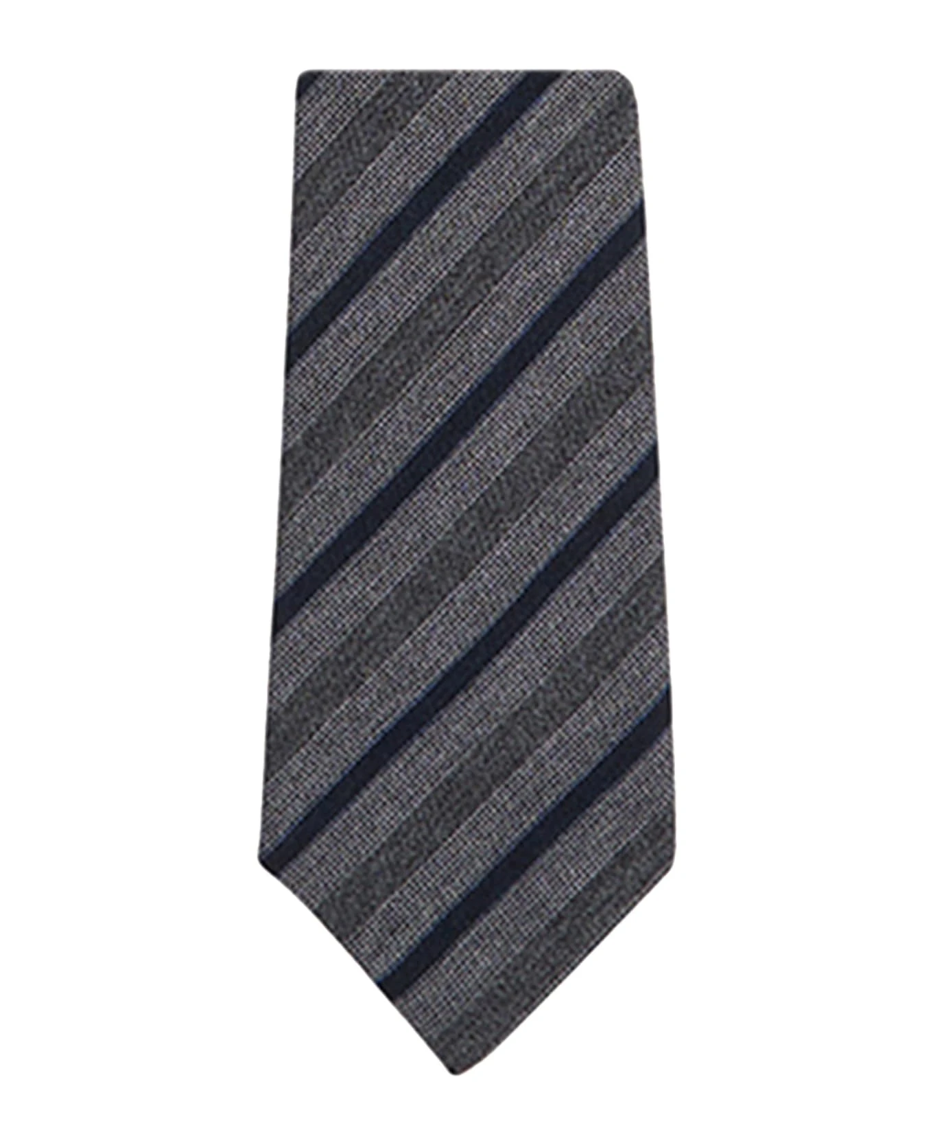 Wool and silk tie featuring a regimental pattern in shades of grey and black. Kiton ties are handmade following the seven-fold technique, drawing upon an ancient tradition of Neapolitan tie-makers. This technique takes its name from the way the tie is constructed: it is made from a panel of silk that is folded diagonally seven times, from the sides inwards, without any cuts or linings being added, and all steps are carried out by hand. Length: 1. 48 m – Width: 8. 5 cm. To keep your Kiton tie looking flawless, we recommend that you store it flat and untied, and prevent it coming into contact with water and chemicals. We recommend professional laundering and pressing.