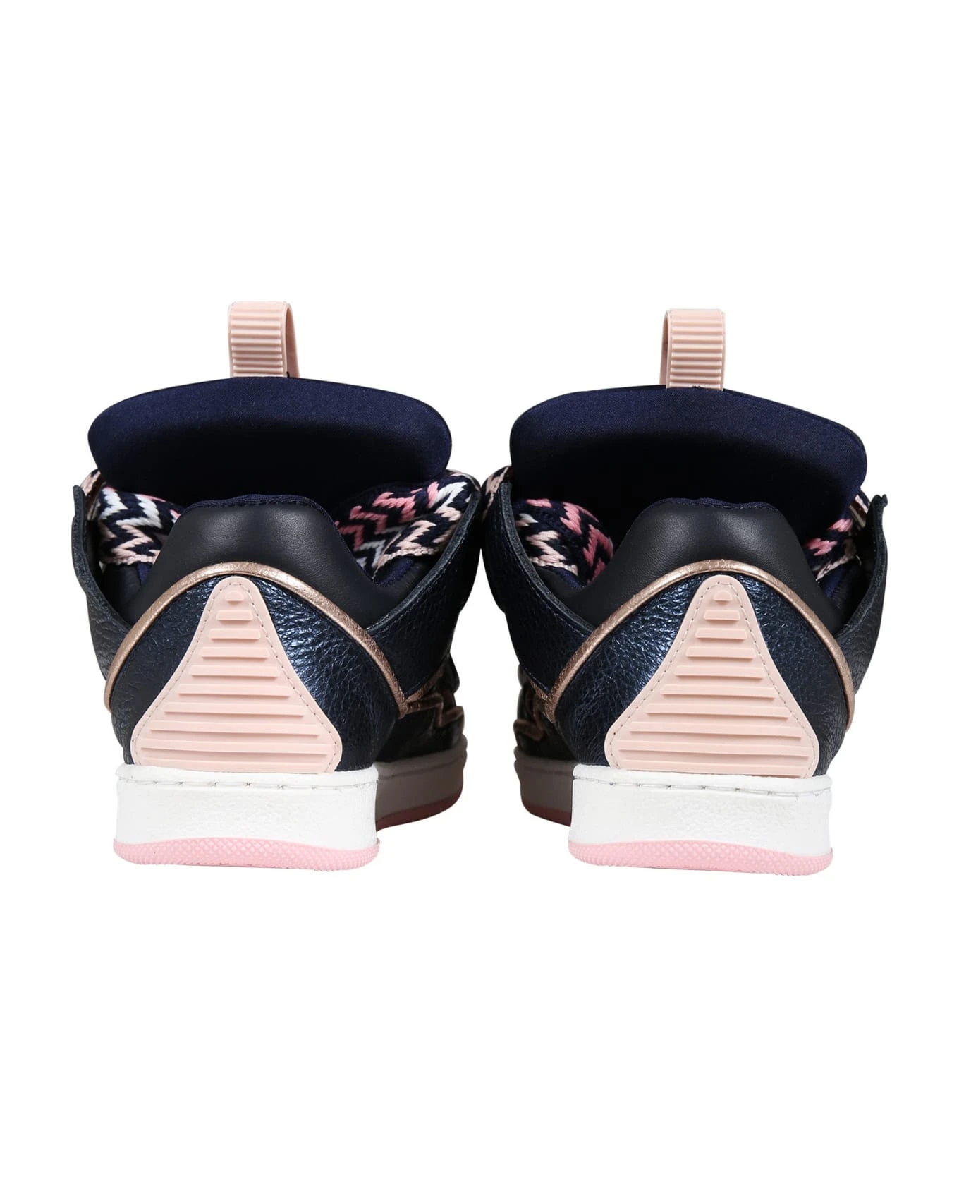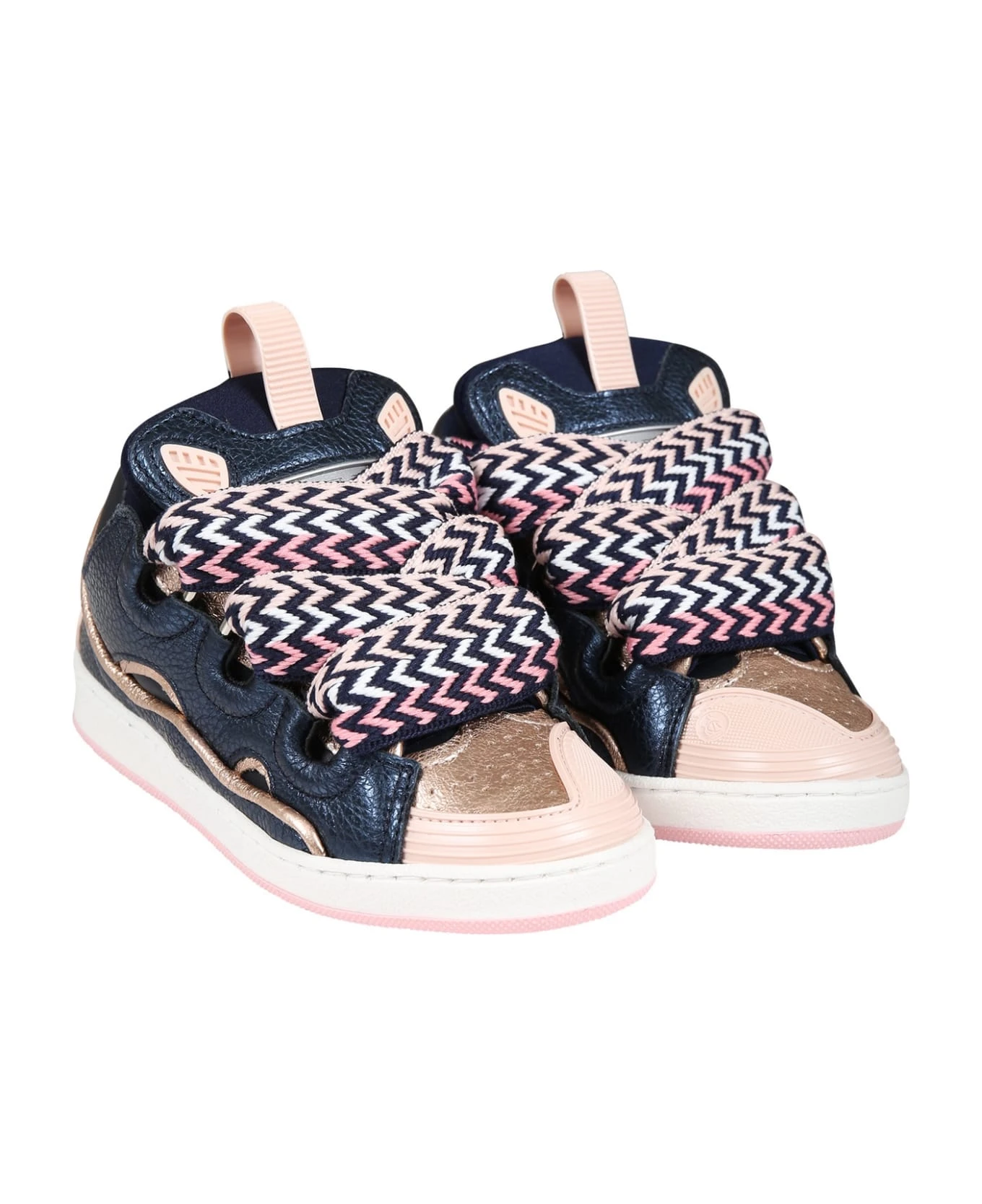 Blue sneakers with rubber sole, upper in leather and textile material and closure with multicolor laces on the front.