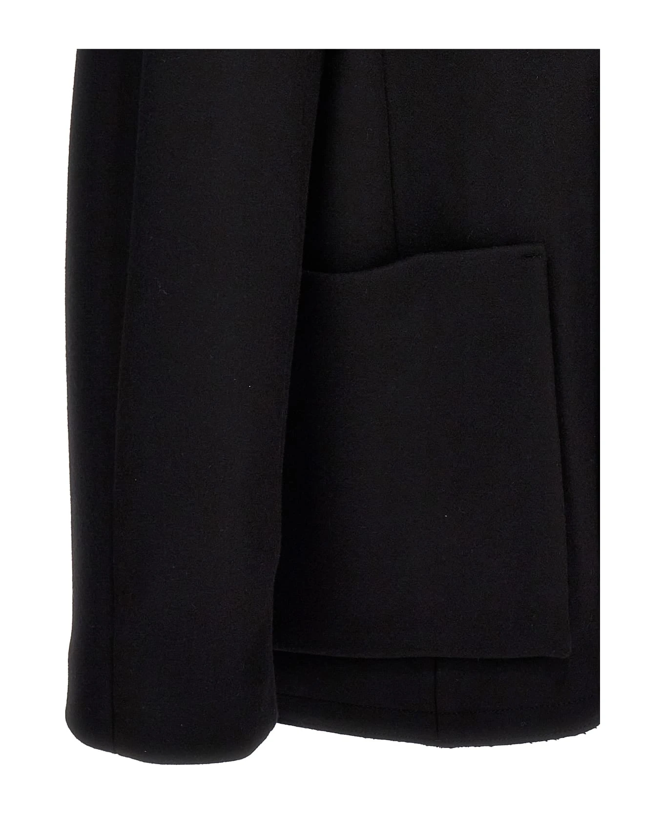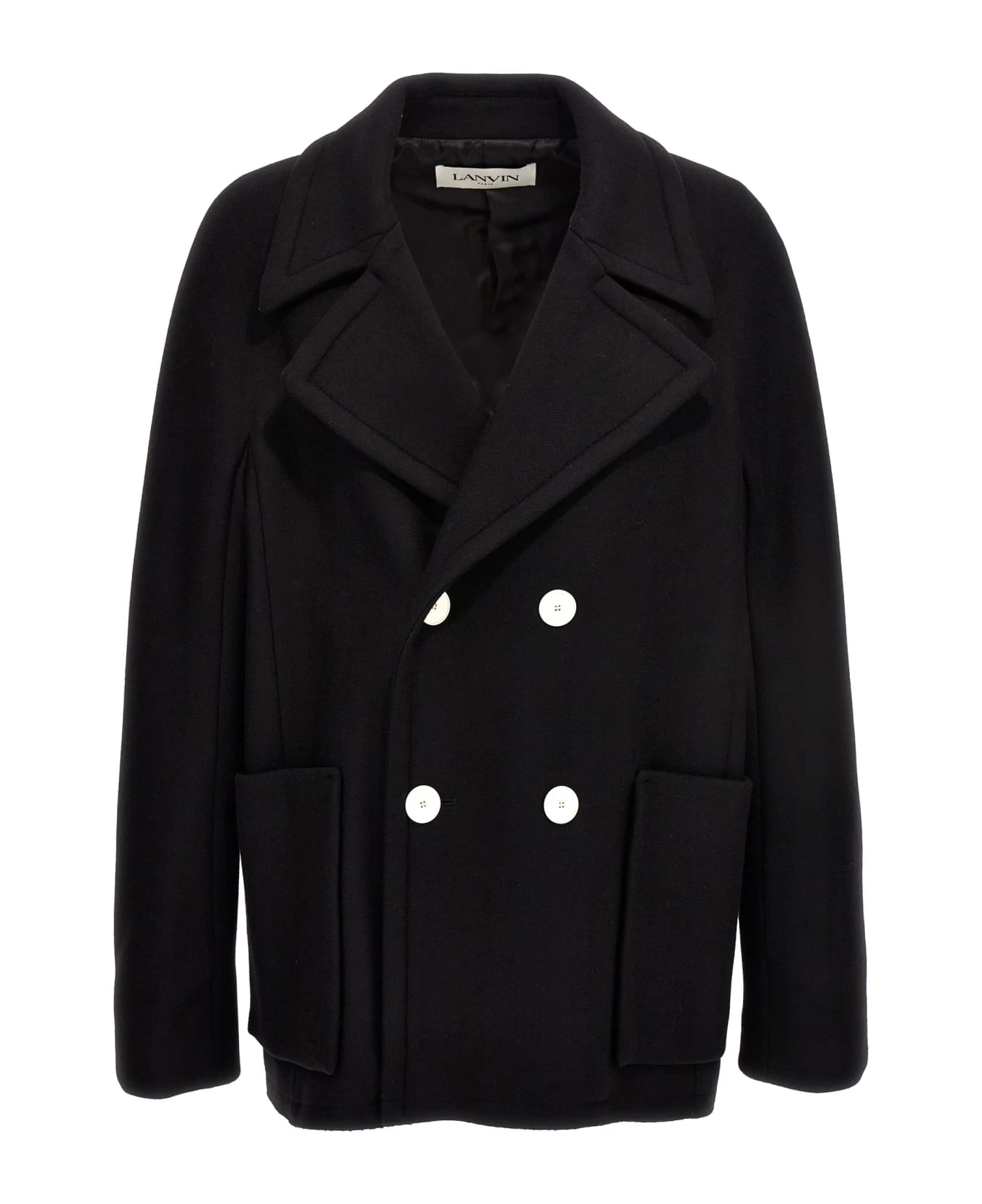 Double breast kimono wool coat with contrast button closure, pockets and long sleeves.