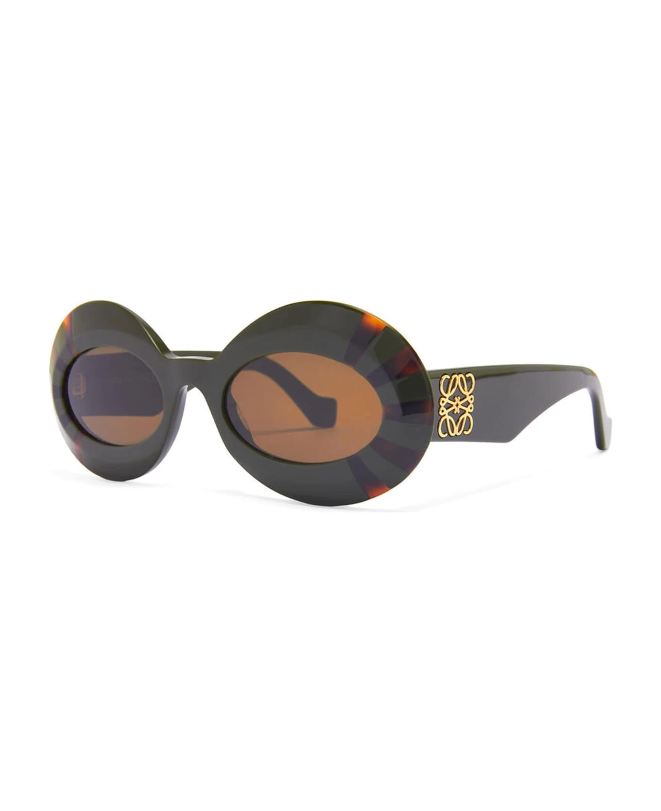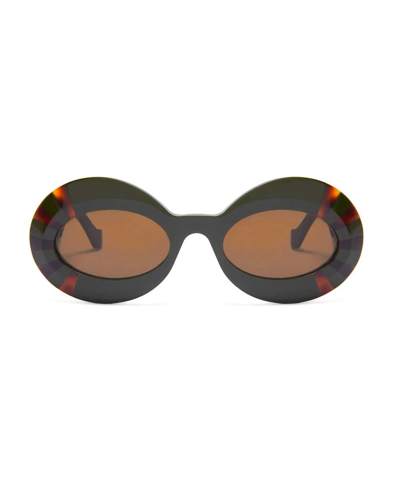 Loewe LW40091I – GREEN / BROWN (LW40091I-96E) are oval sunglasses made in Italy. They feature oversize green and brown acetate frame, Loewe metal anagram on temples, and brown lens with 100% UV protection.