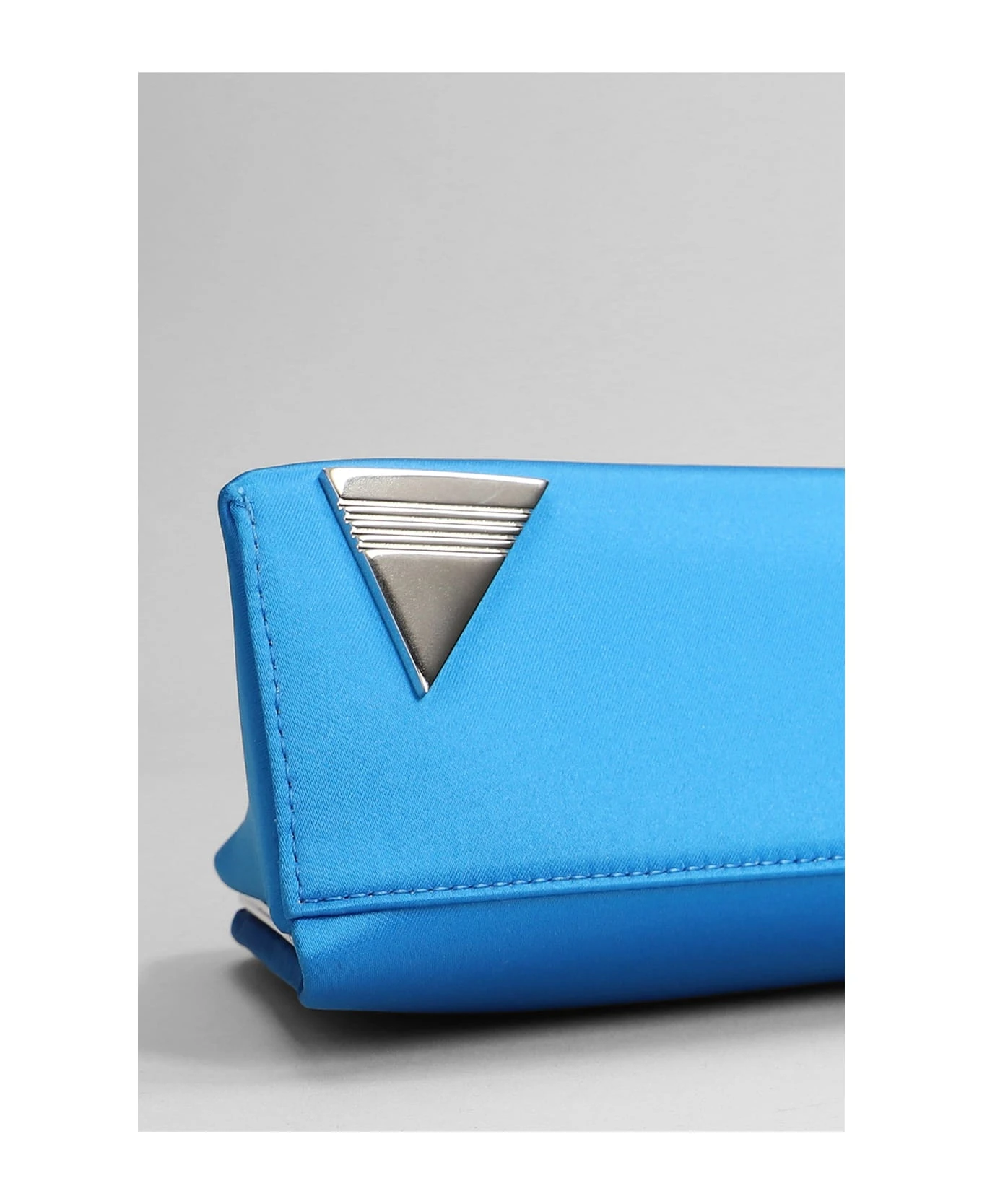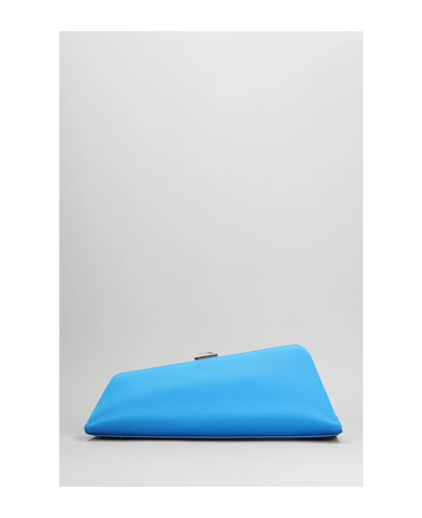 Long Night Hand bag in cyan satin, 100% satin, snap closure, iconic logo on the bottom, engraved logo, Made in Italy, single compartment, detachable shoulder strap, Height 130 mm, Width 355 mm, Width 355 mm
