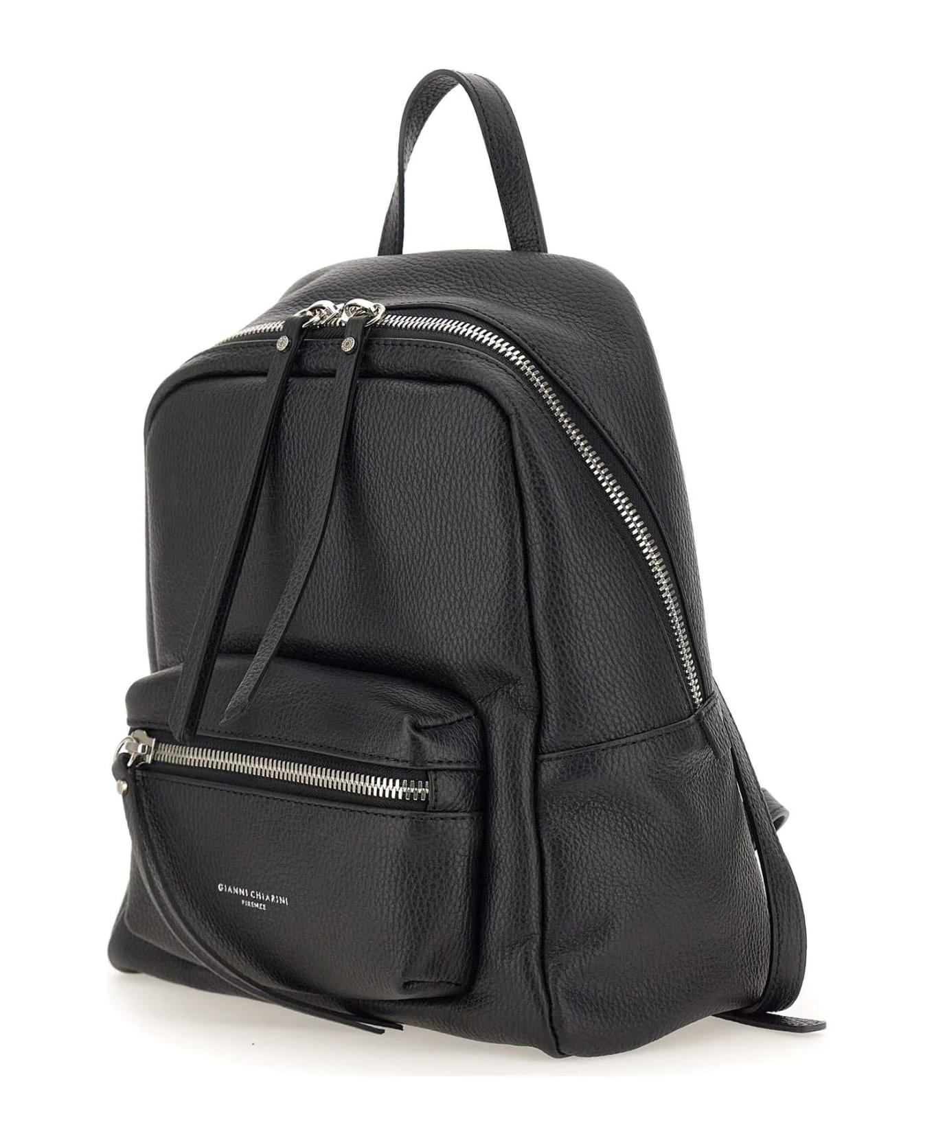 Gianni Chiarini ”Luna” women’s textured leather backpack, black, adjustable shoulder straps, top fastening with zip, front pocket with zip, silver hardware, inside pockets, front silver logo. Dimensions: height 27cm, width 25cm, depth 14cm. Made in Italy.
