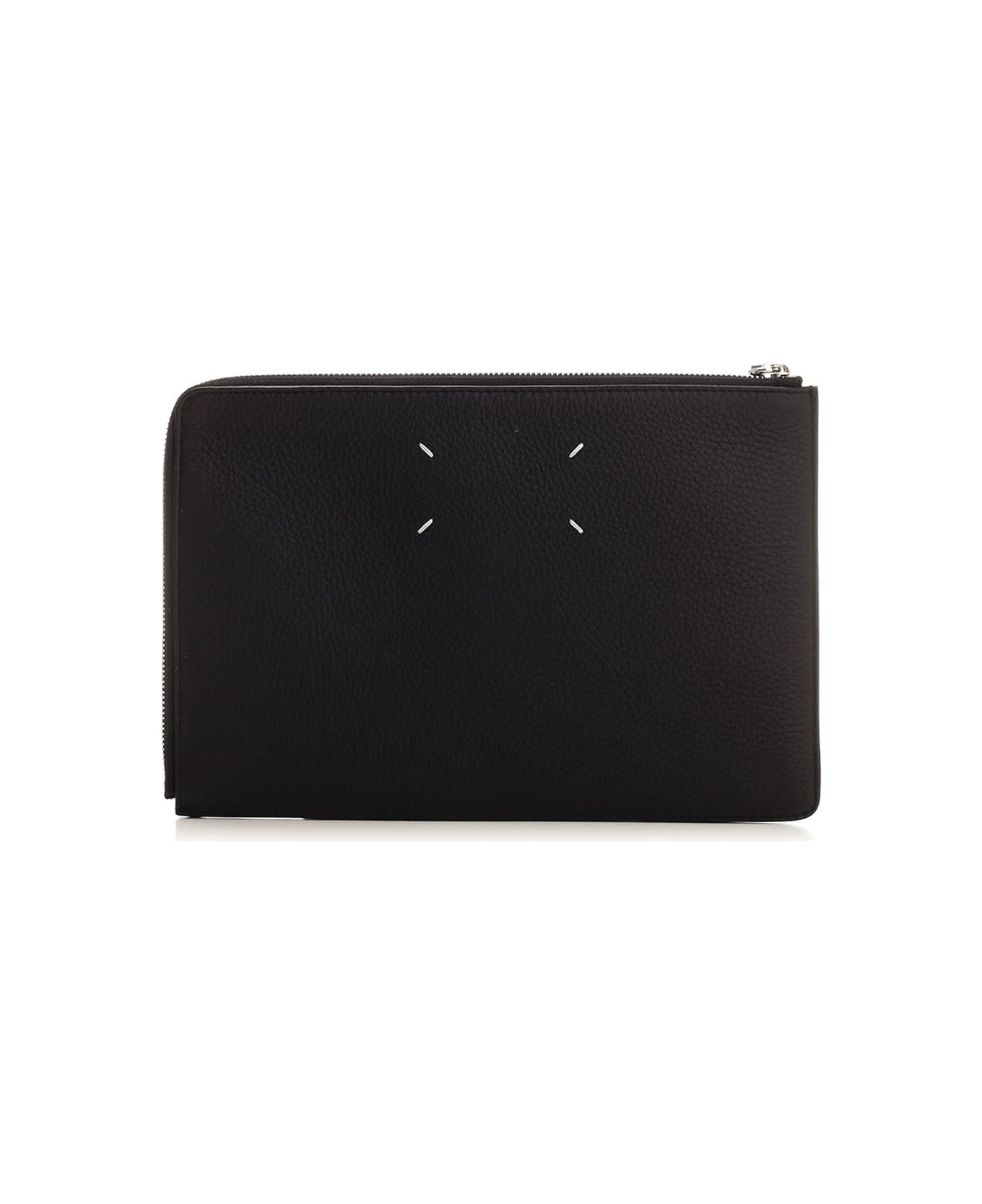 Large pouch by Maison Margiela in black deerskin with zip closure and leather strap