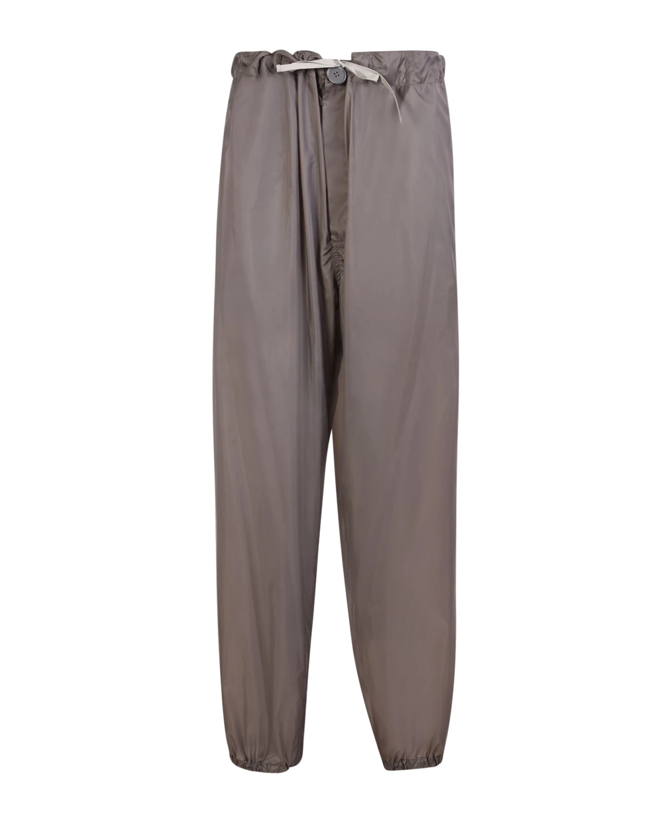 Drawstring waist. Semi-sheer design. Drawstring cuffs. Color: mud
