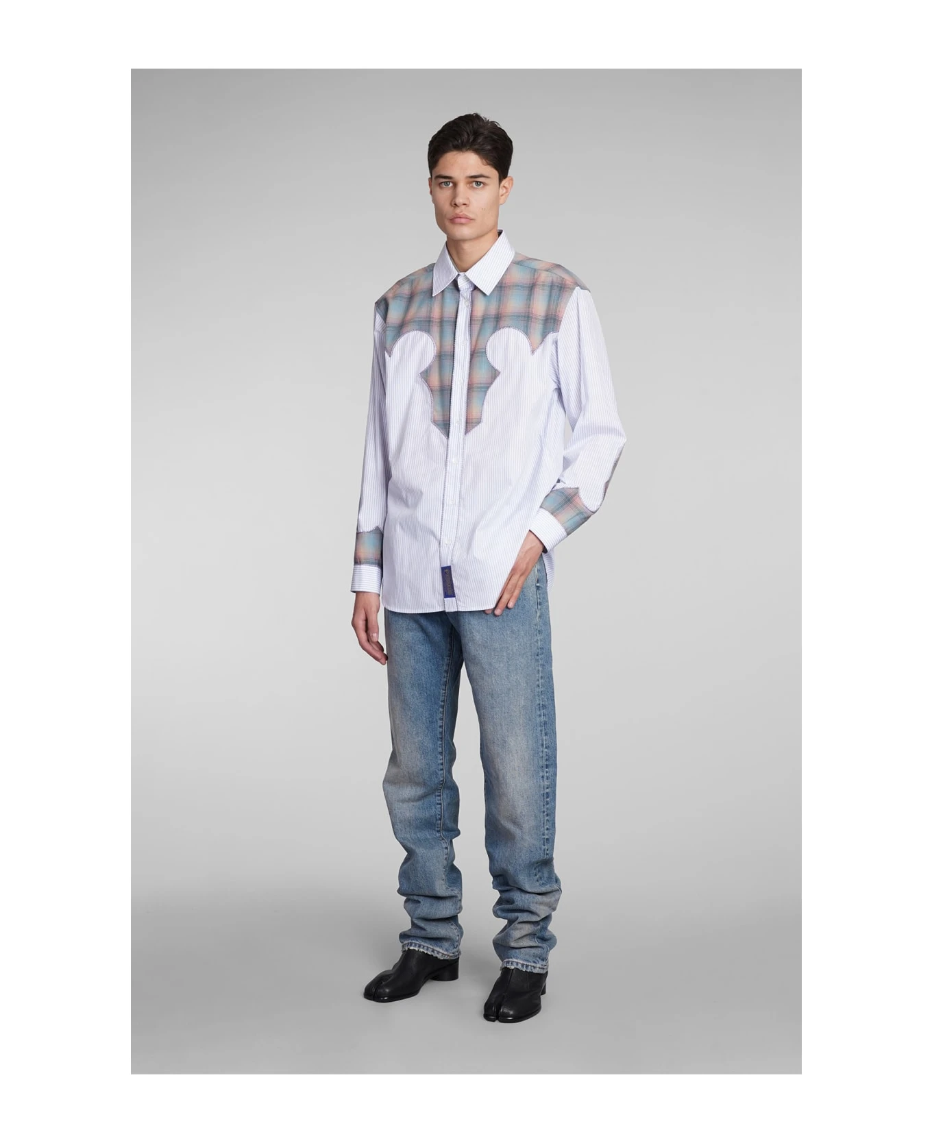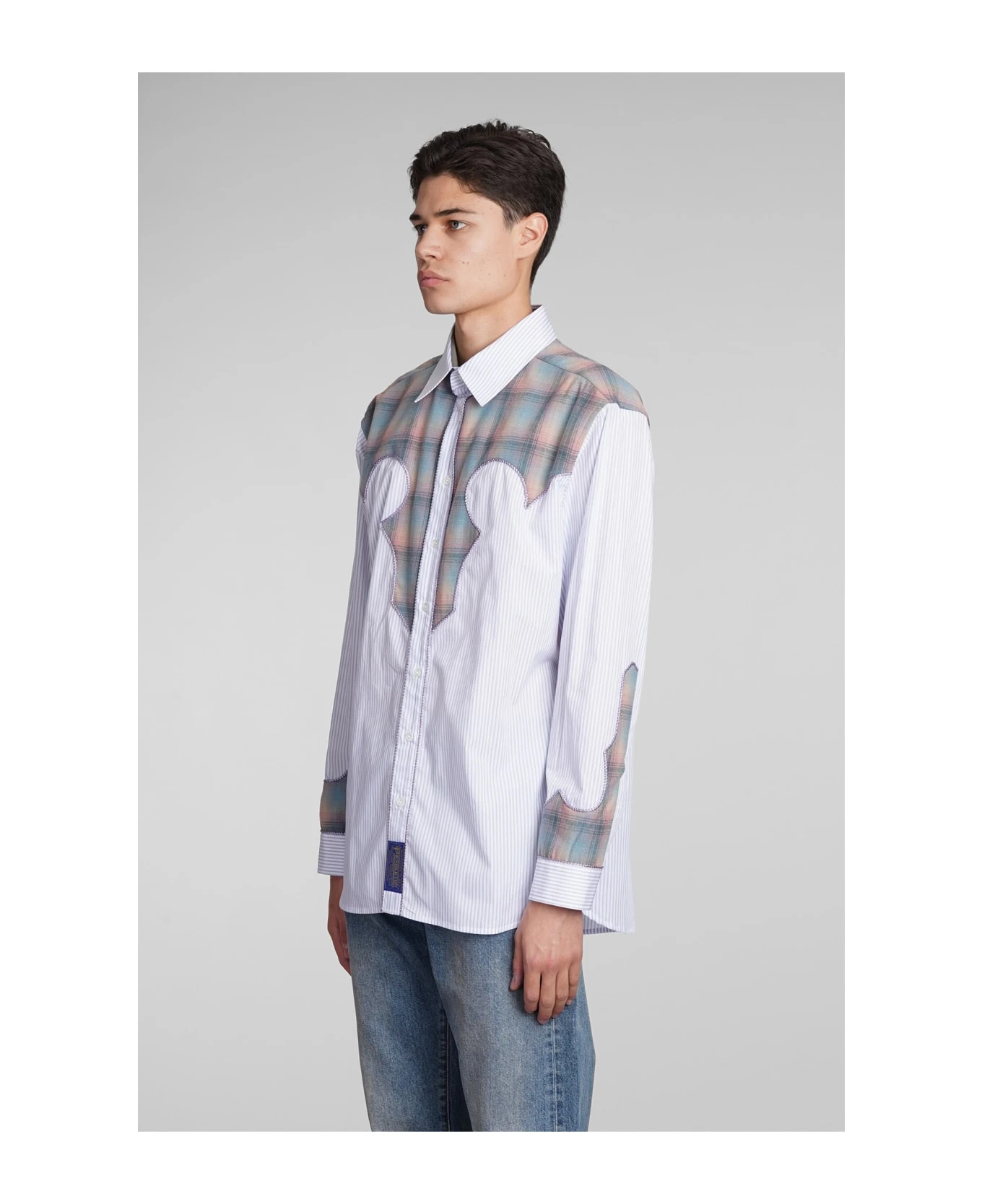 Shirt in white cotton, collar, frontal buttoning, long sleeves, check print, stripe detailing, embroidered detail, 100% cotton, Made in China, Model is 183 cm and wears 41