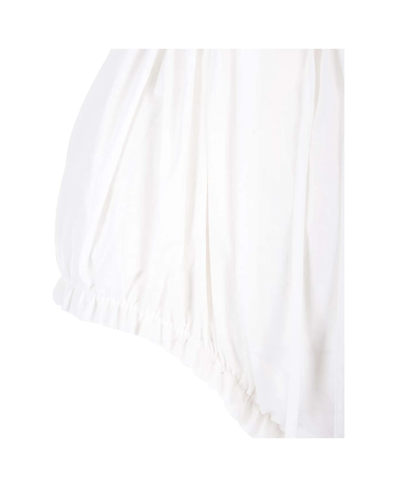 White cotton playsuit from Maison Margiela, featuring a Peter Pan collar, short sleeves, short pants, gathered design and covered back buttons.