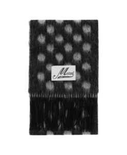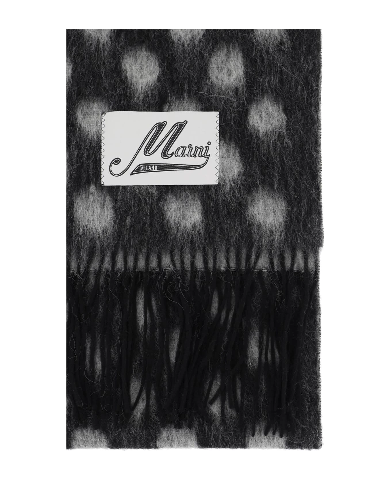 Alpaca and mohair blend scarf by Marni featuring polka dot pattern, fringed hems and finished with logo label.
