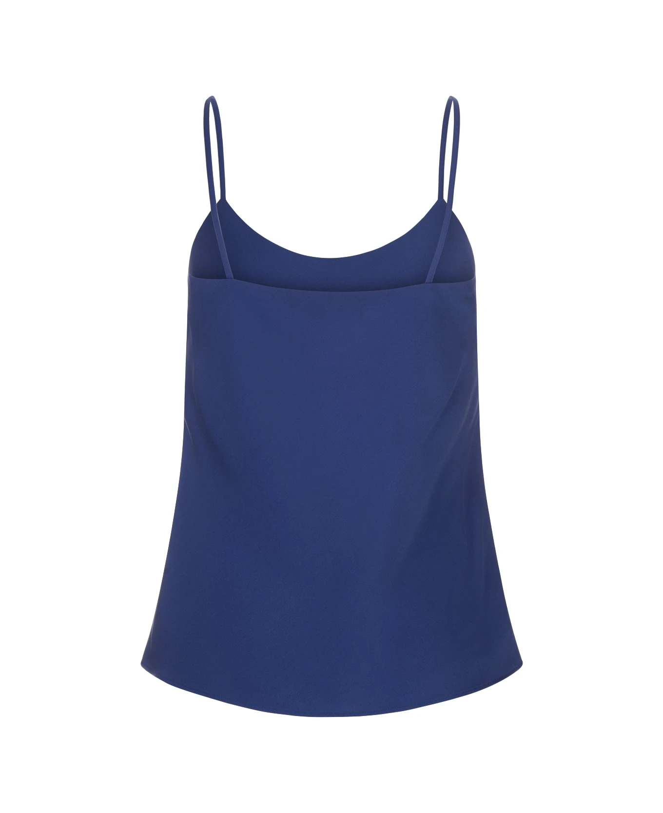 Elegant Oboli Top, Slip Dress Model By Max Mara Made Of Precious Pure Silk Charmeuse In Blue Colour. Model Characterized By Fitted Volume That Slips Softly Along The Silhouette, It Is Finished With Thin Straps And Round Neckline. Length 58 Cm.
