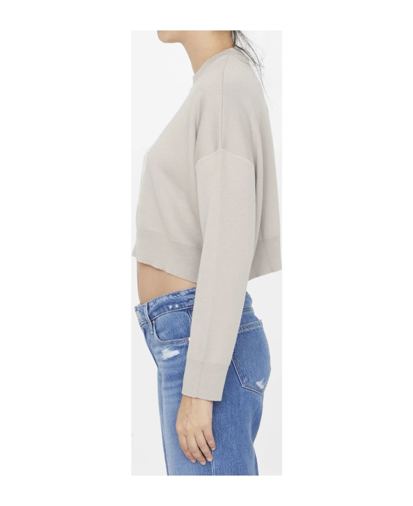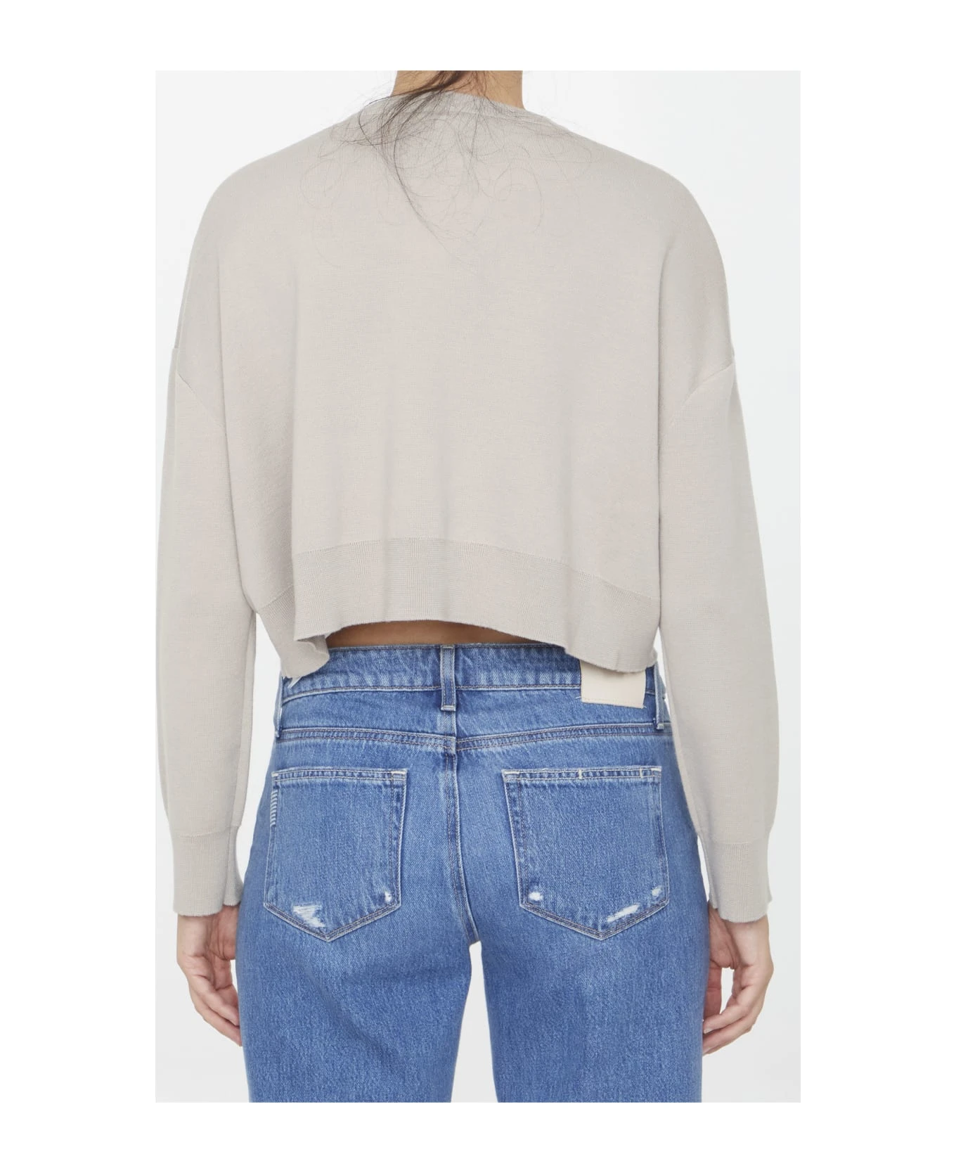 Long-sleeved crewneck crop Sir jumper in sand-colored virgin wool with front embroidery. Ribbed neck, cuffs and hem. Regular fit.