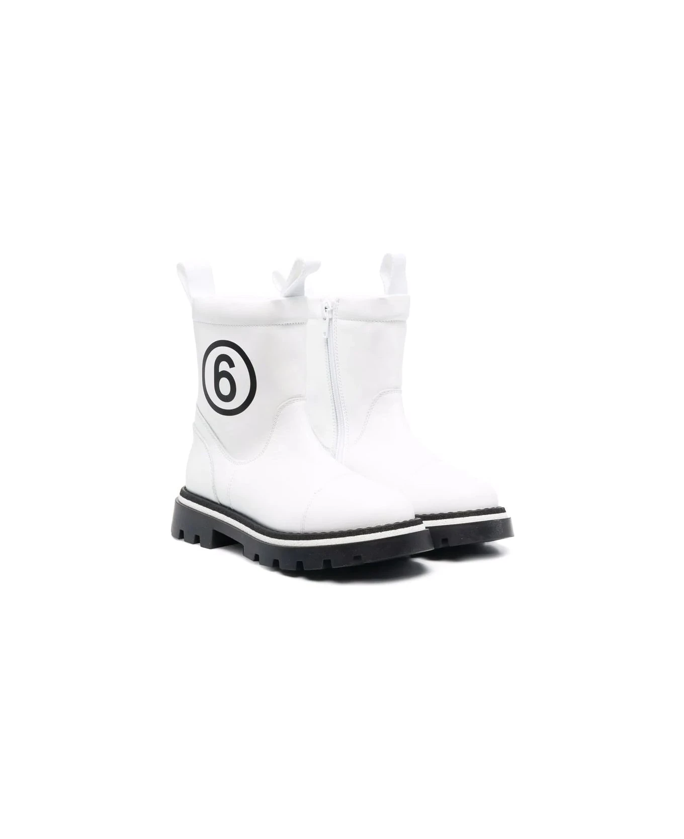 Side logo print, double tongue closure, side zip closure, round toe, ankle height, logo insole and rubber lug sole.