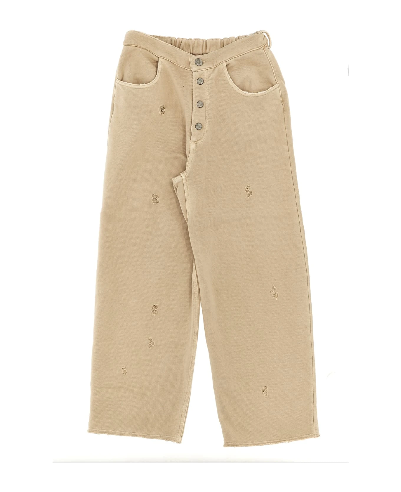 Cotton pants with used-effect details, elastic waistband, button closure, pockets.