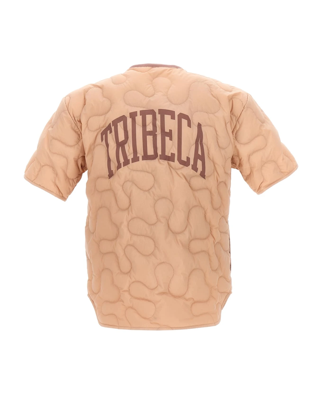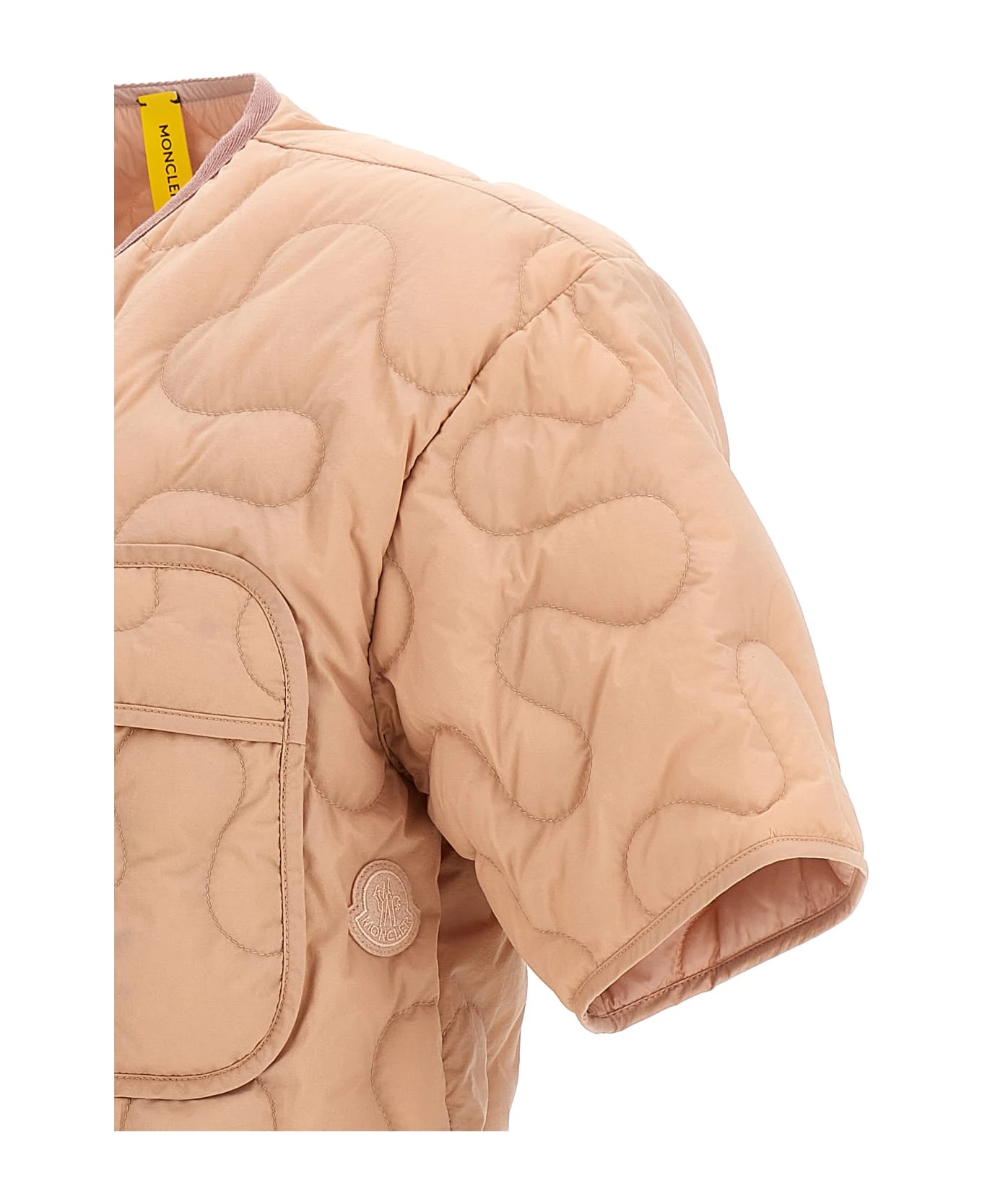 Moncler Genius x Salehe Bembury padded shirt with short sleeves and ultra-nylon padded snap button closure.