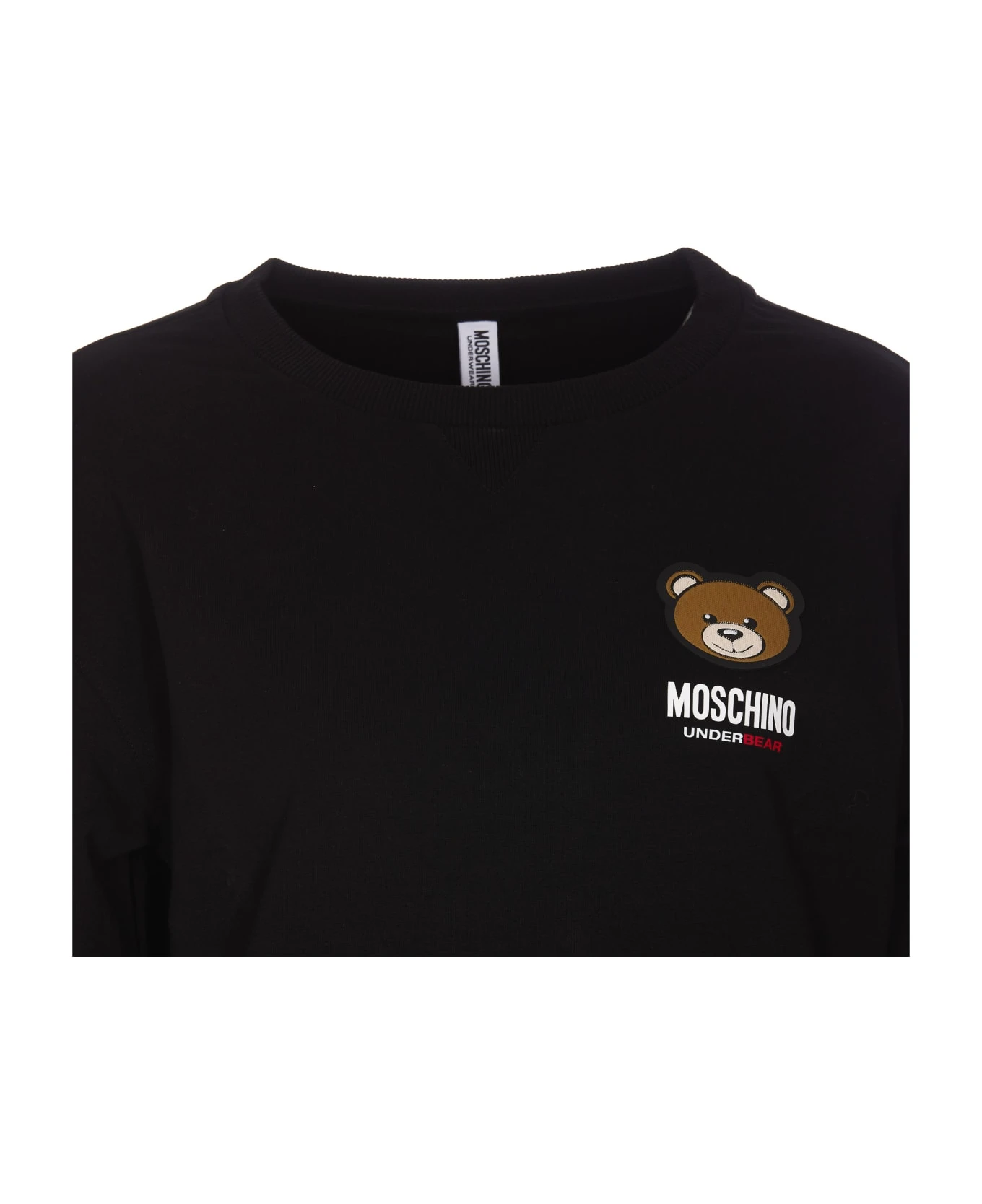 Moschino black sweatshirt, crewneck, frontal patch teddy logo, long sleeves
