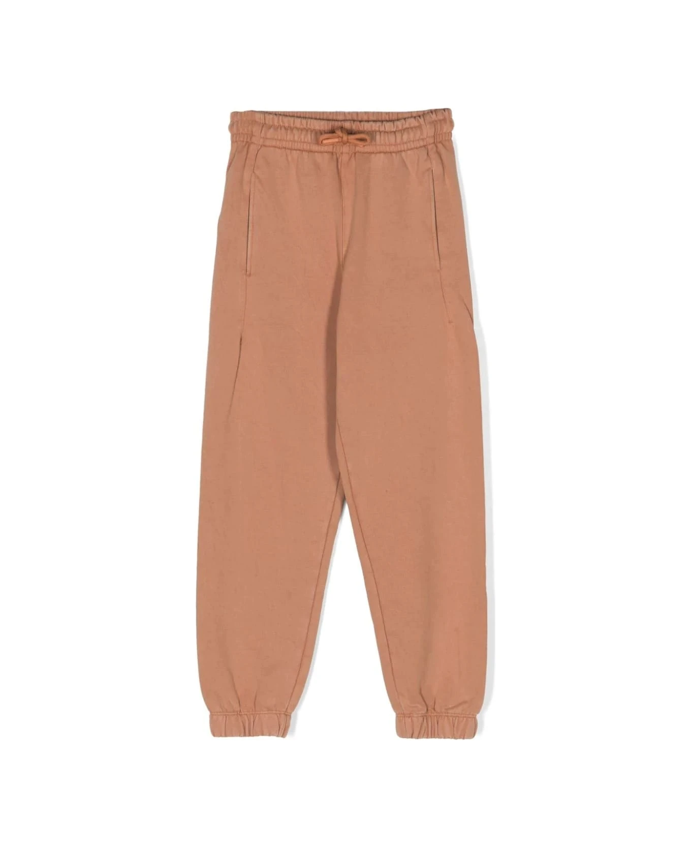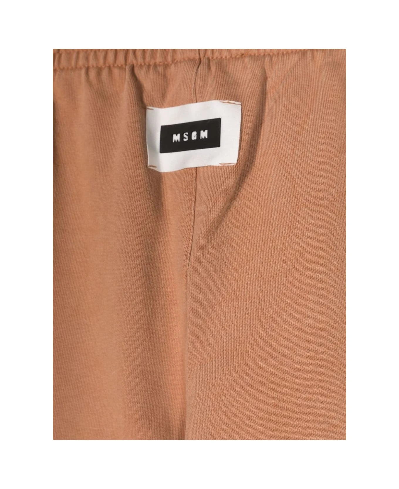 Brown cotton MSGM Kids joggers with drawstring waist, side pockets, elasticated leg bottom and contrasting logo patch stitched on the back.