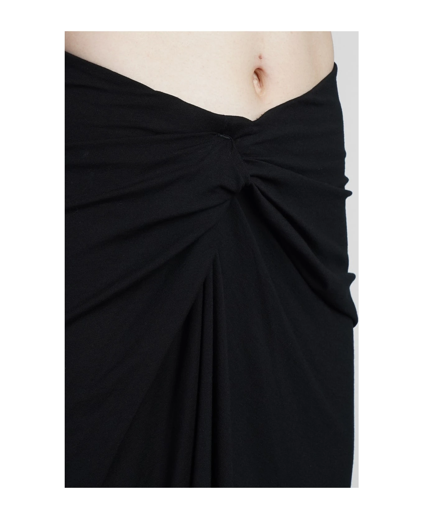 Natacha Skirt in black viscose, draped, low waist, knot detail, 95% viscose, 5% Elastan, Made in Tunisia, Model is 180 cm and wears 36