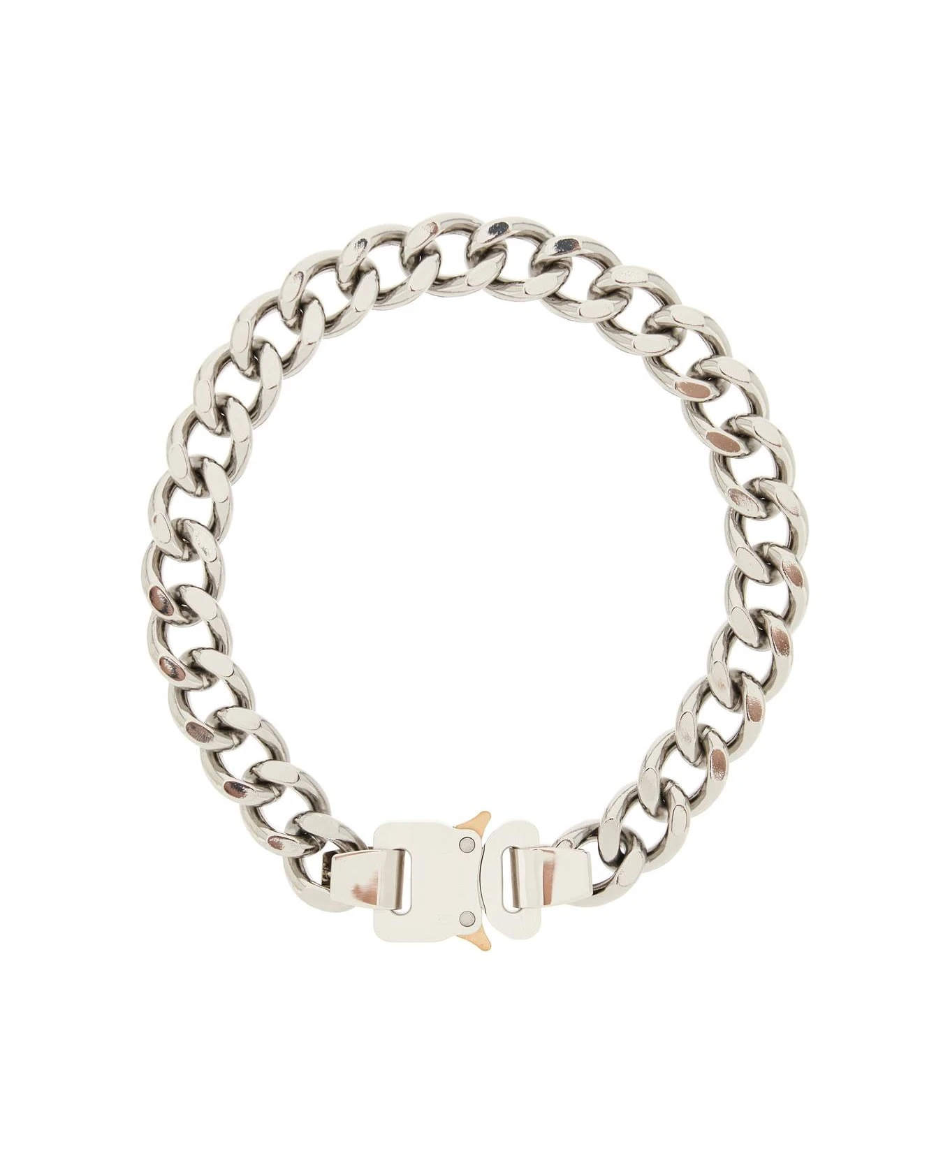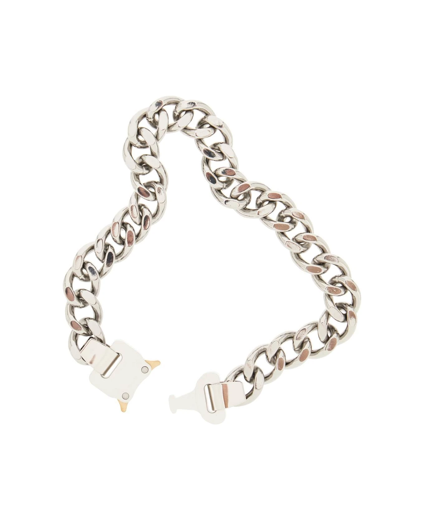 Chain necklace by 1017 ALYX 9SM crafted in silver-finish aluminum with iconic rollercoaster buckle closure. The item pictured is size M.