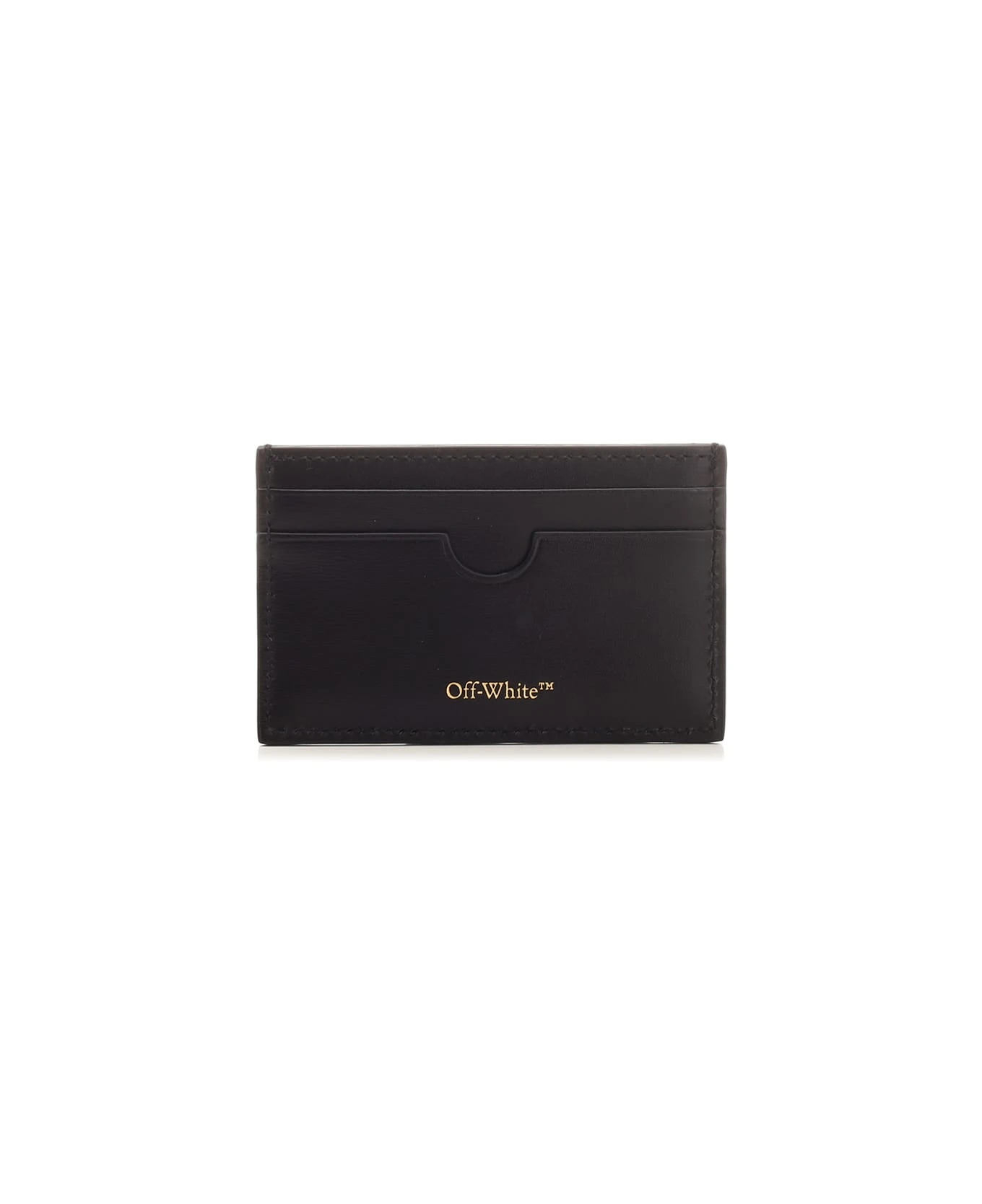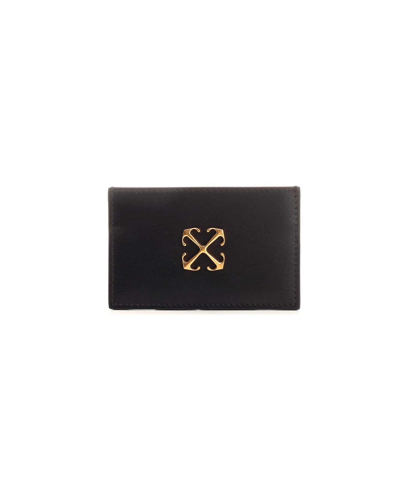 ‘Jitney’ card holder in matte and smooth leather, with gold Arrow and 4 card slots from Off-White.