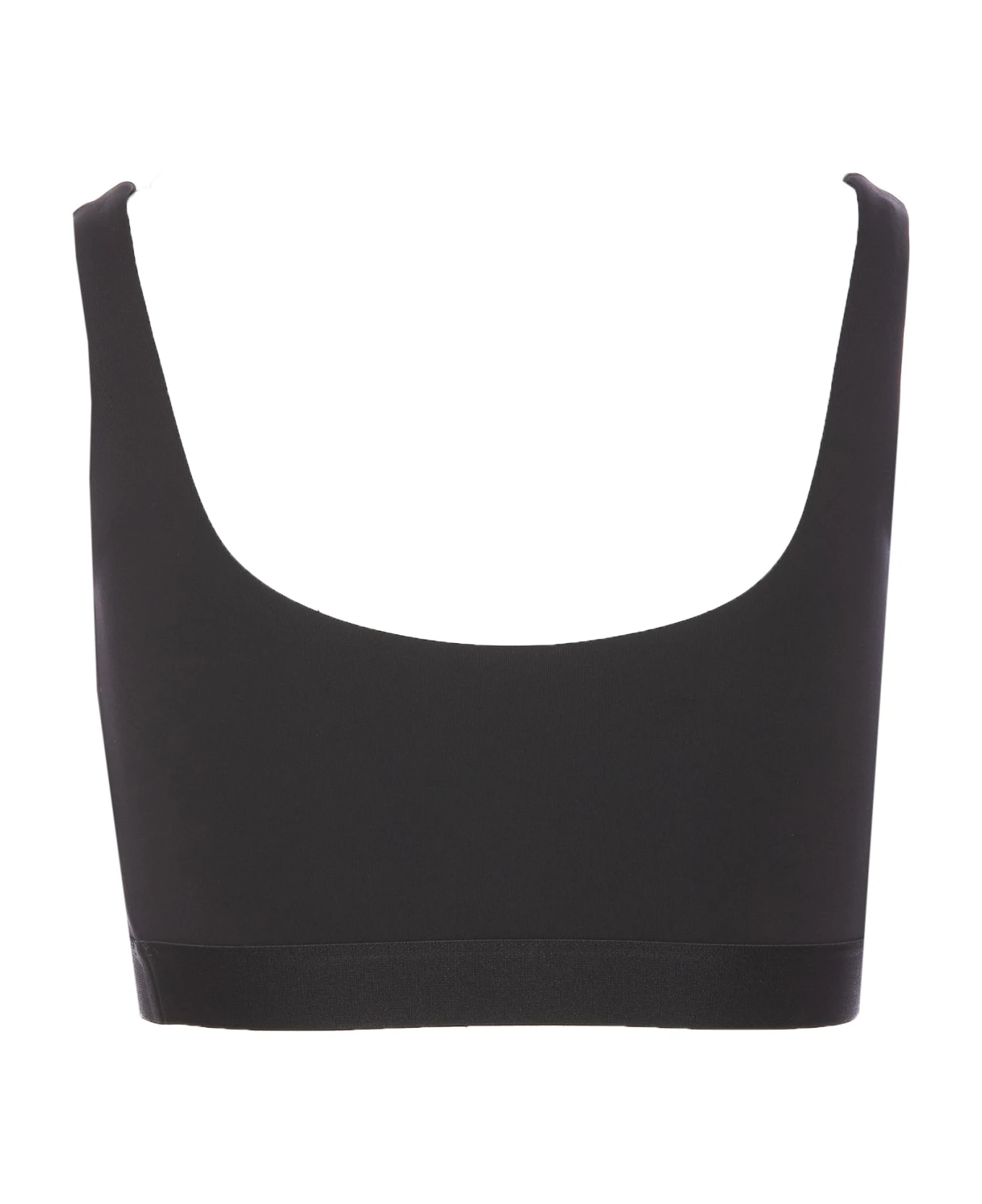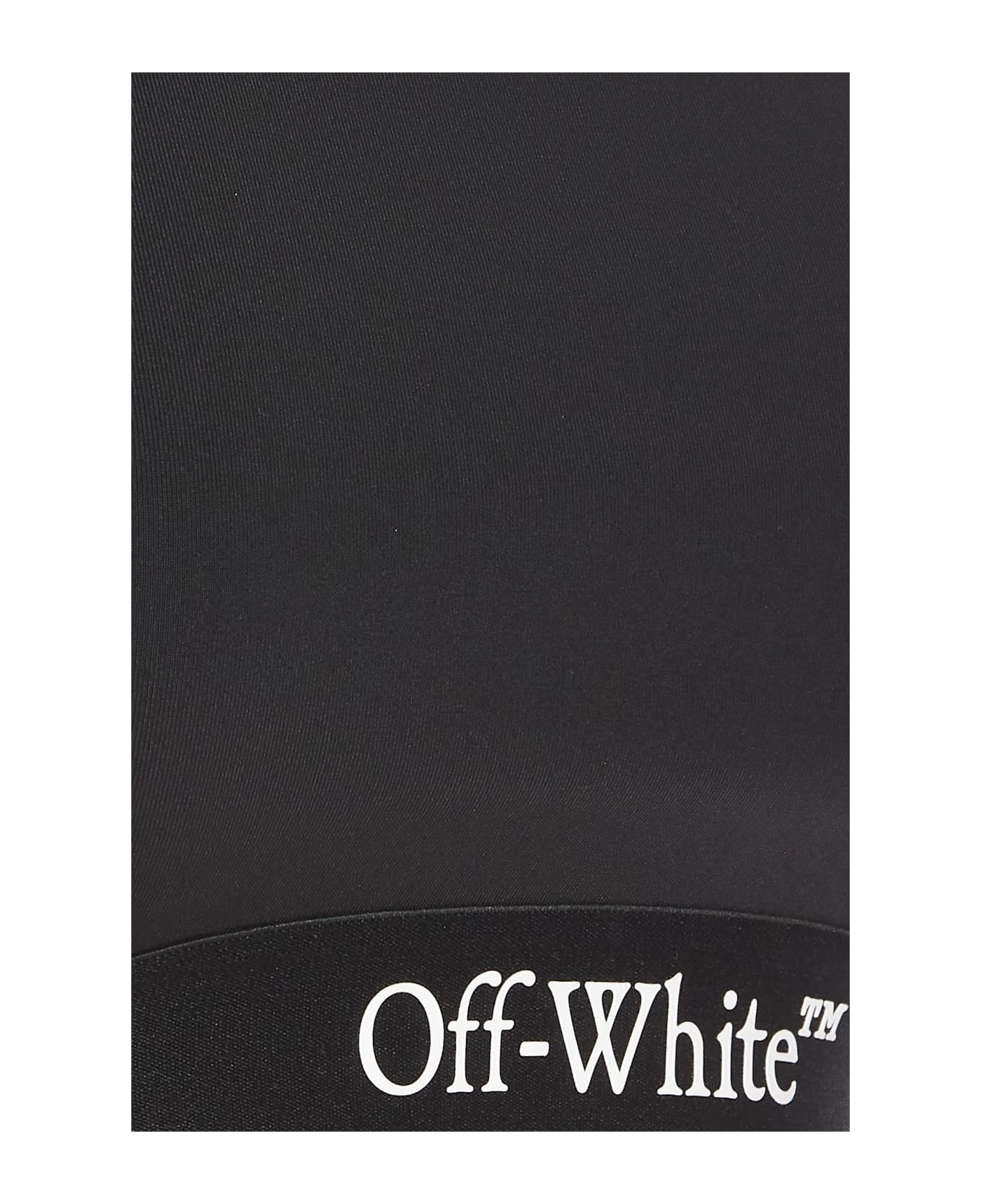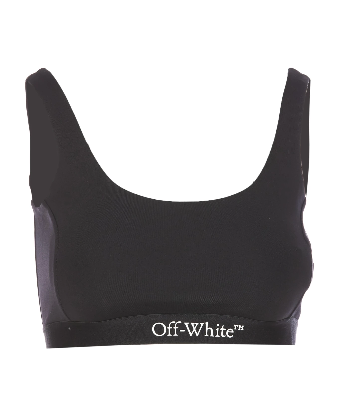 Of White black seam bra with frontal embroidered Off Stamp logo, crop model