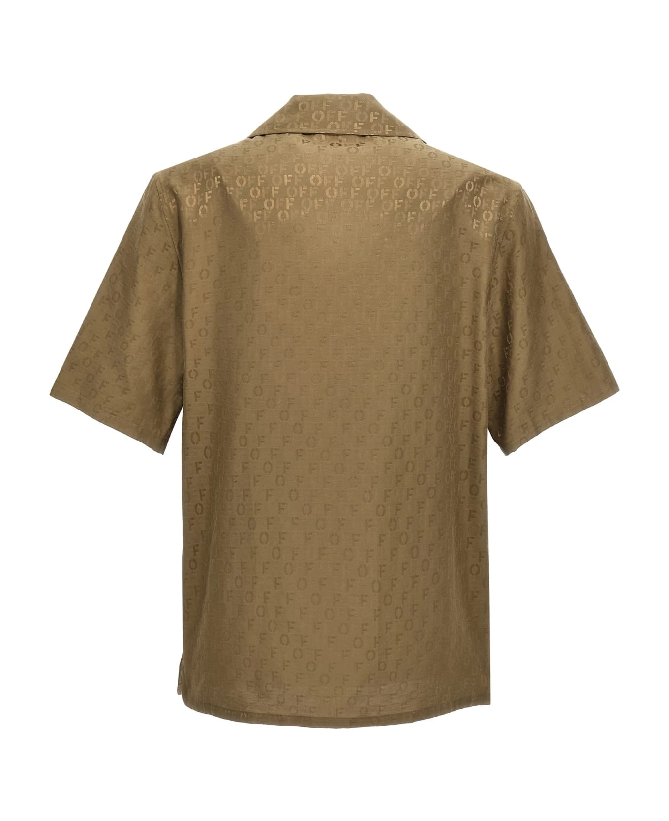 ‘Silkcoat Holiday’ silk and cotton shirt with all-over logo, button closure, short sleeves.