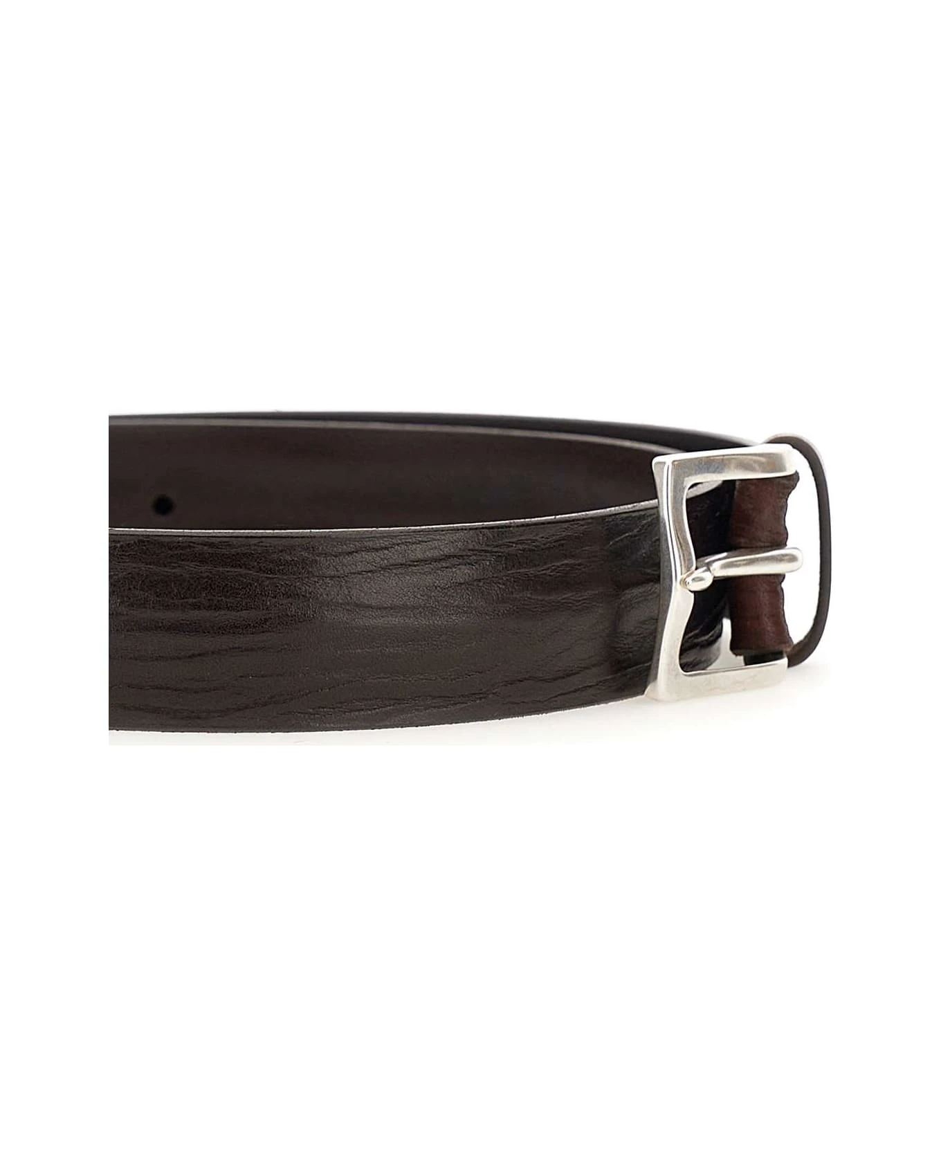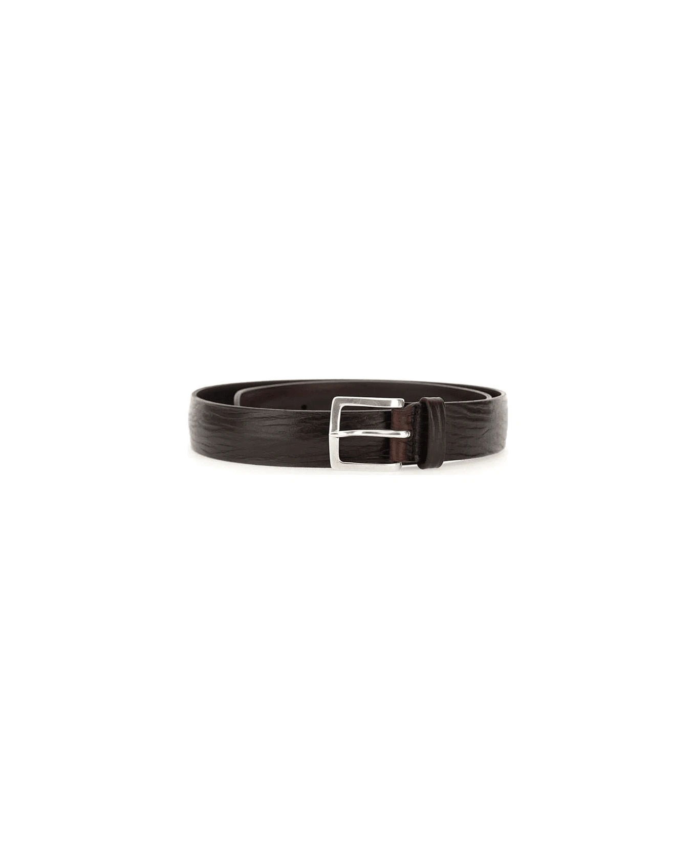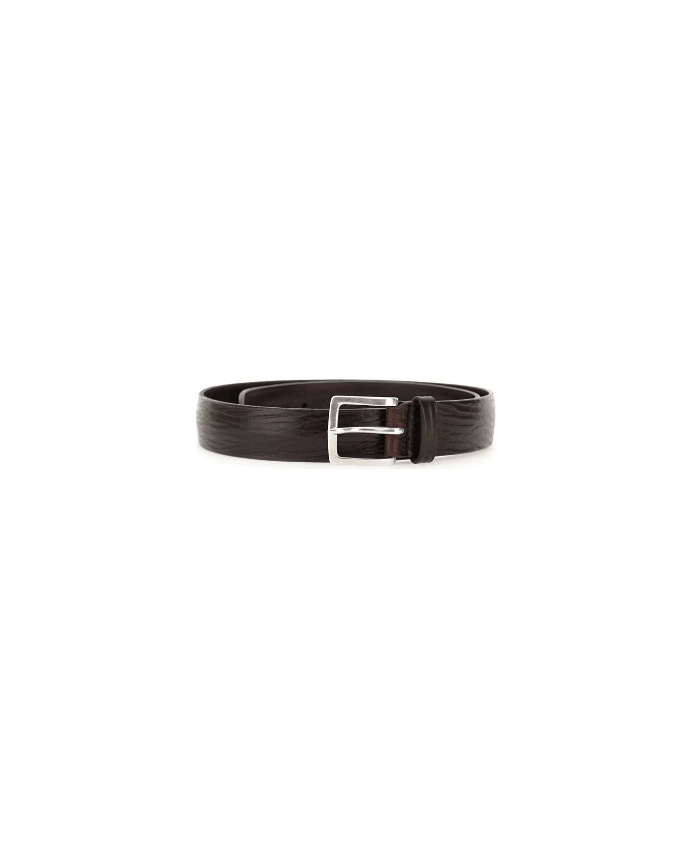 Orciani “Blade”engraved leather belt, dark brown colour, square buckle english silver, width 3cm, length 108cm. Made in Italy.