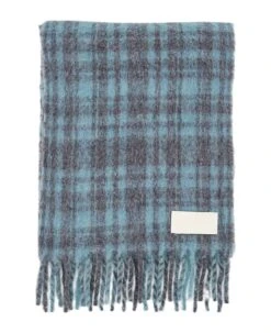 Oversize checkered scarf in alpaca and polyamide blend. Felt embossed ami patch color ivory Size without the fringes: 35×200 cm Length of the fringes: 10 cm each side