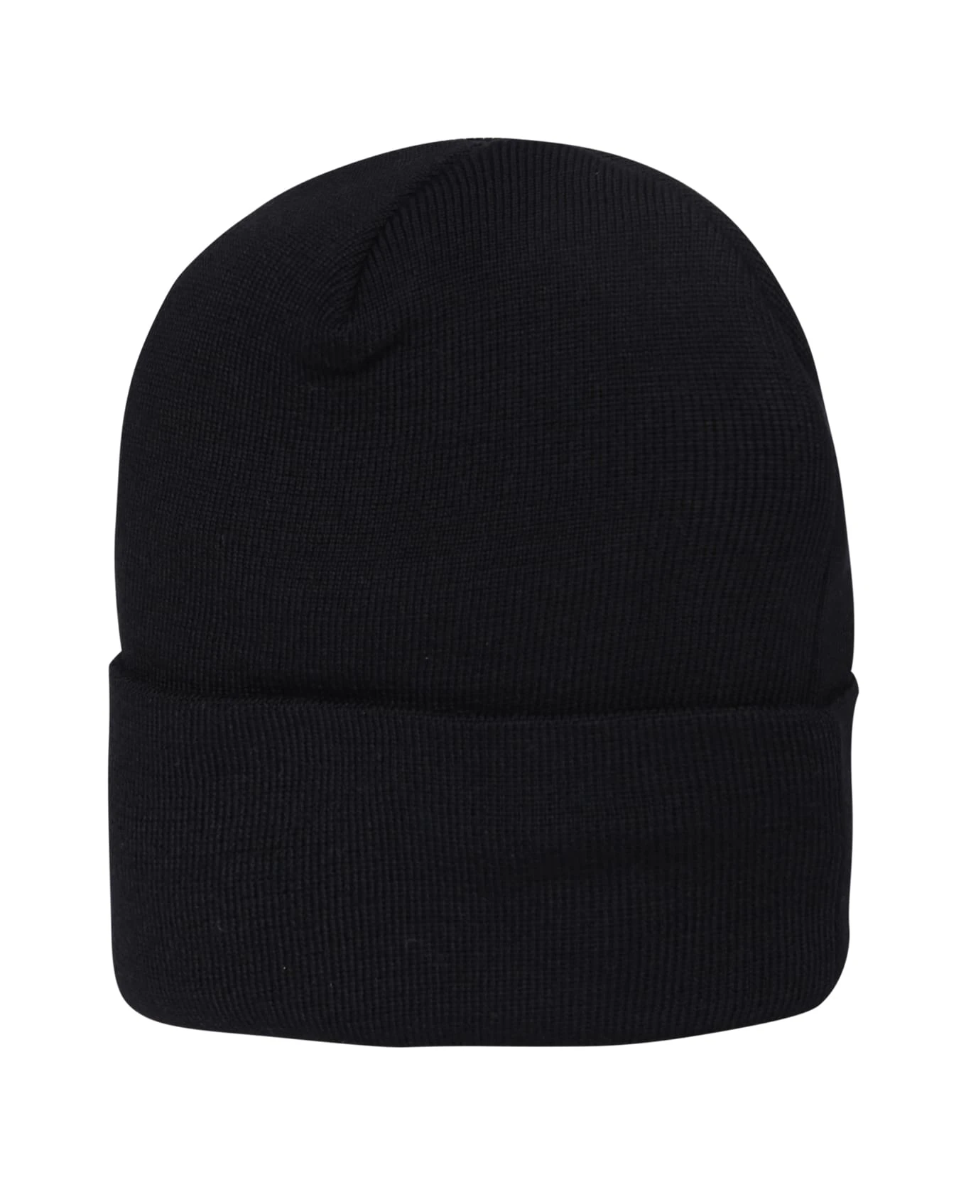 Turn-up brim. Embroidered logo to the front. Contrasting logo. Knitted construction. Tonal stitching. Color: black