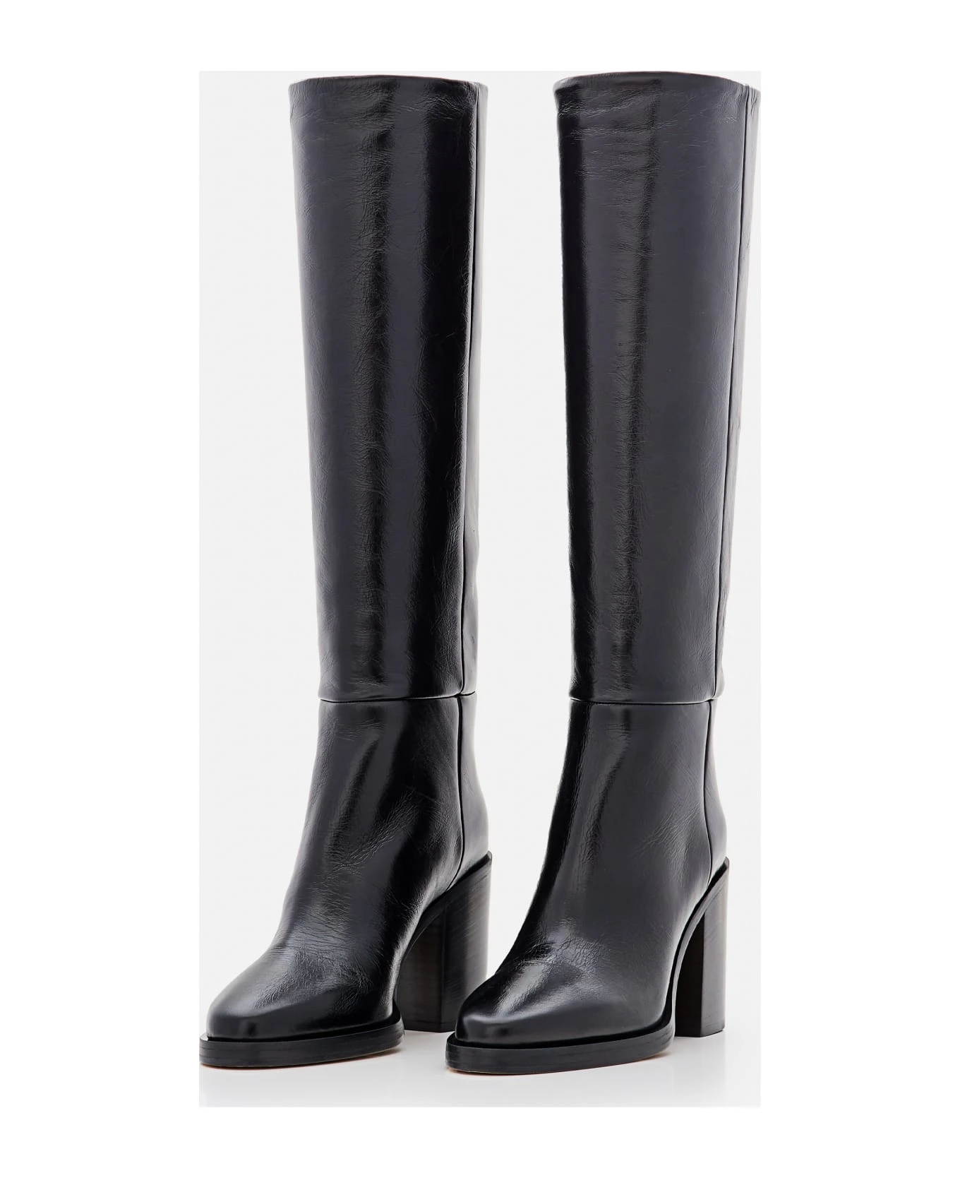 Side zip-up closure. Block heel. Pointed toe. Knee length. Color: black.