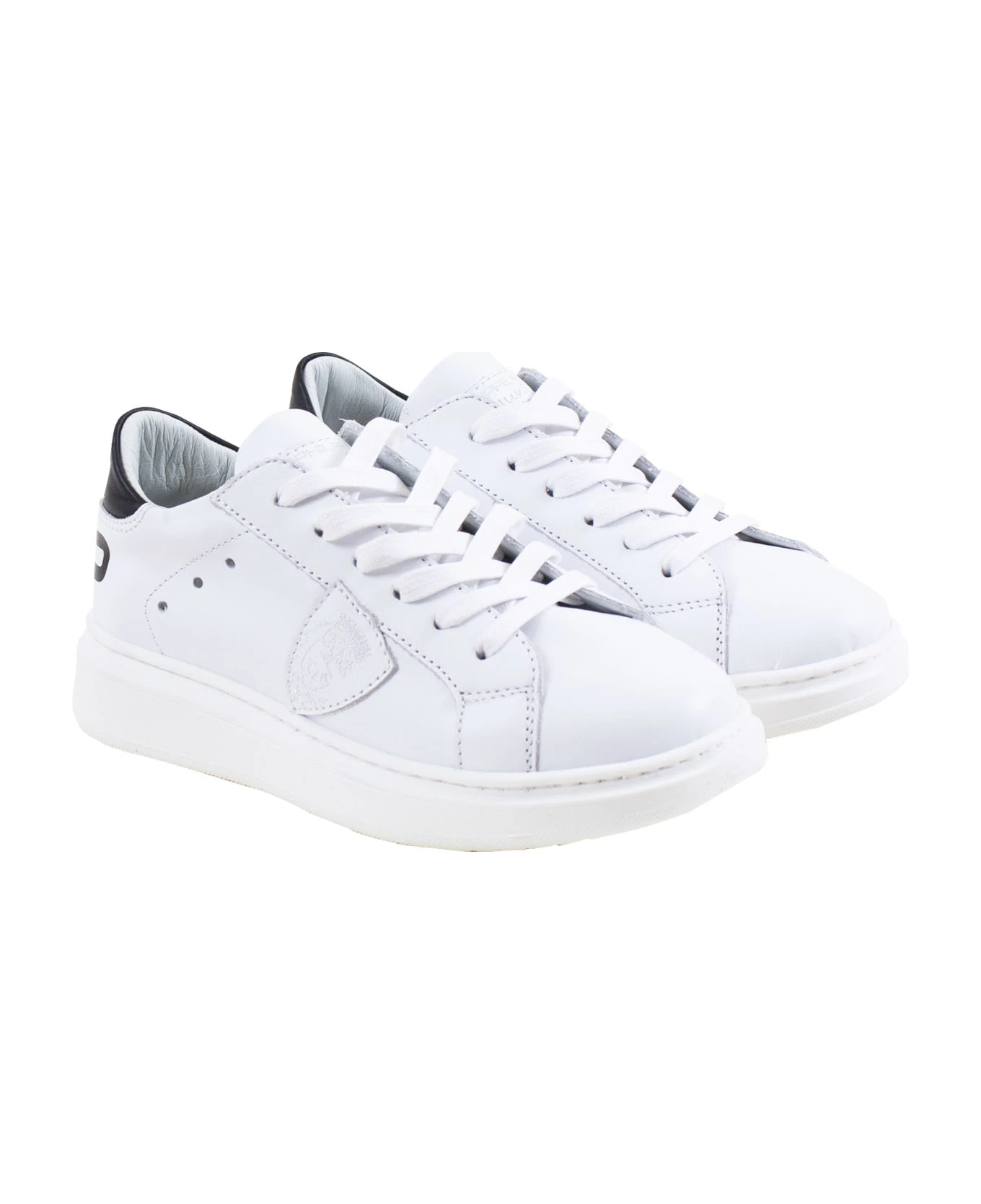 in white color, by Philippe Model Kids. Model with round tip, insole with logo and white rubber sole.