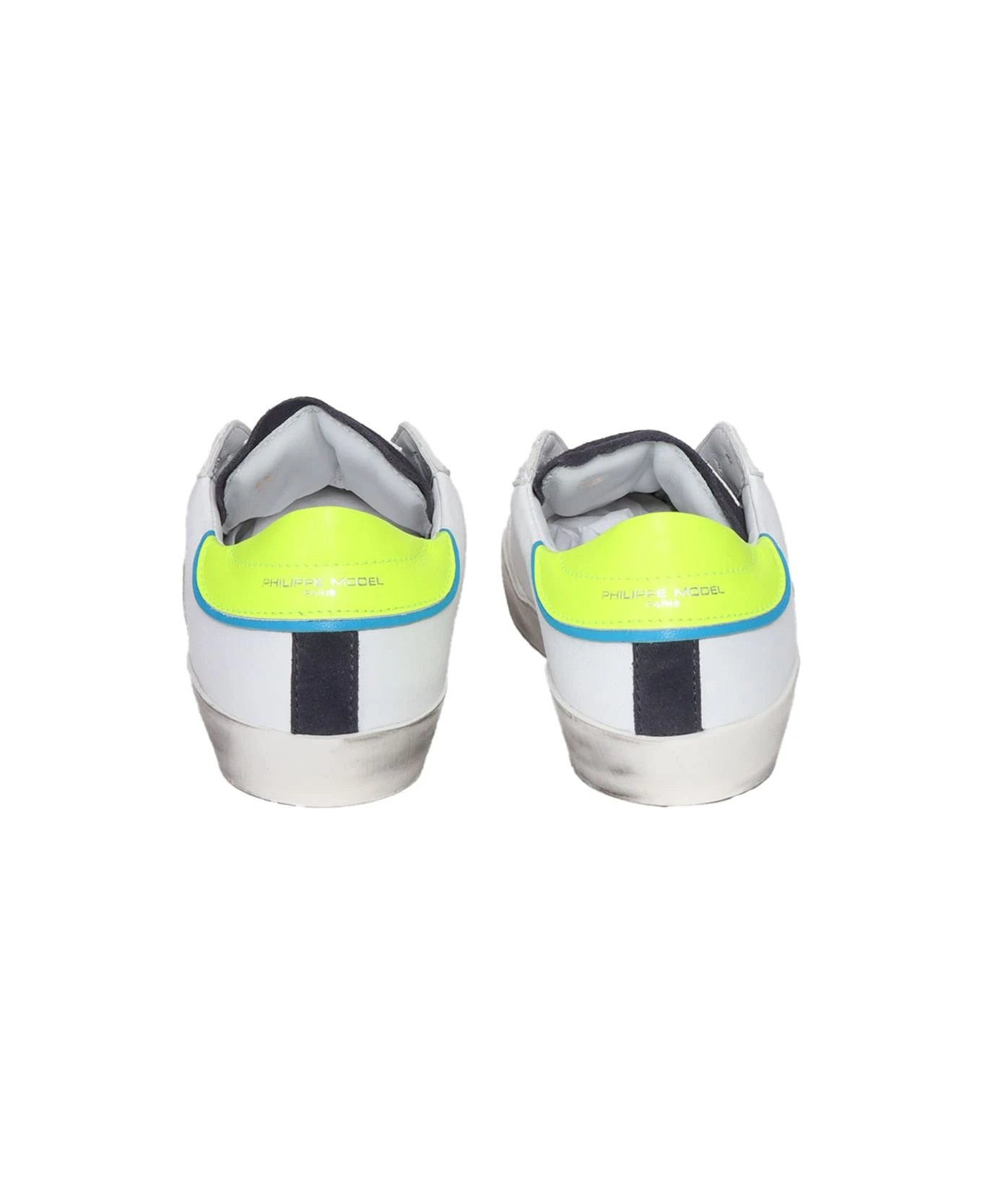 Leather sneakers, fluo heel tab with logo lettering, side logo detail, vintage effect sole, laced-up, contrasting details