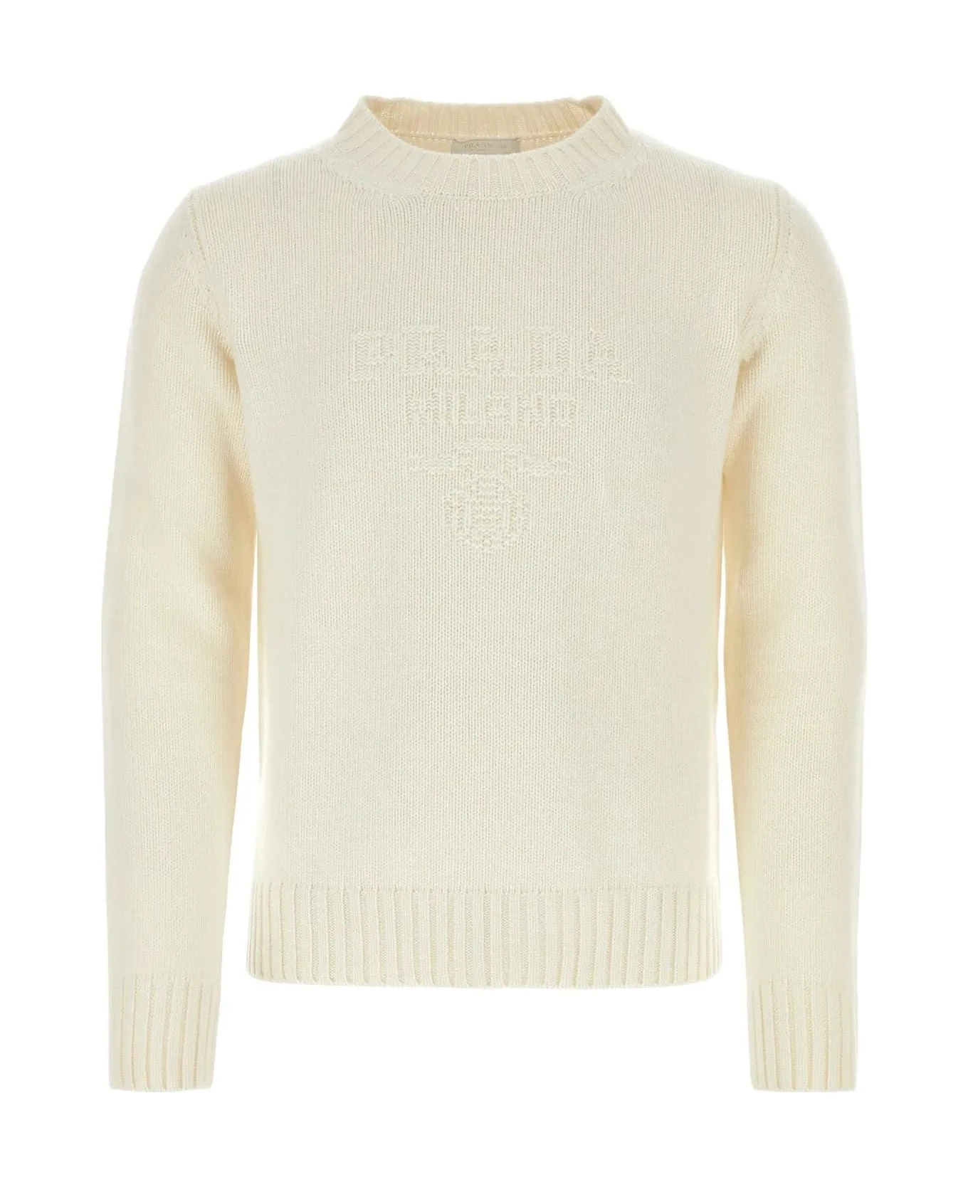 Sweater realized in virgin wool and cashmere characterized by tonal embroidered logo at the front.