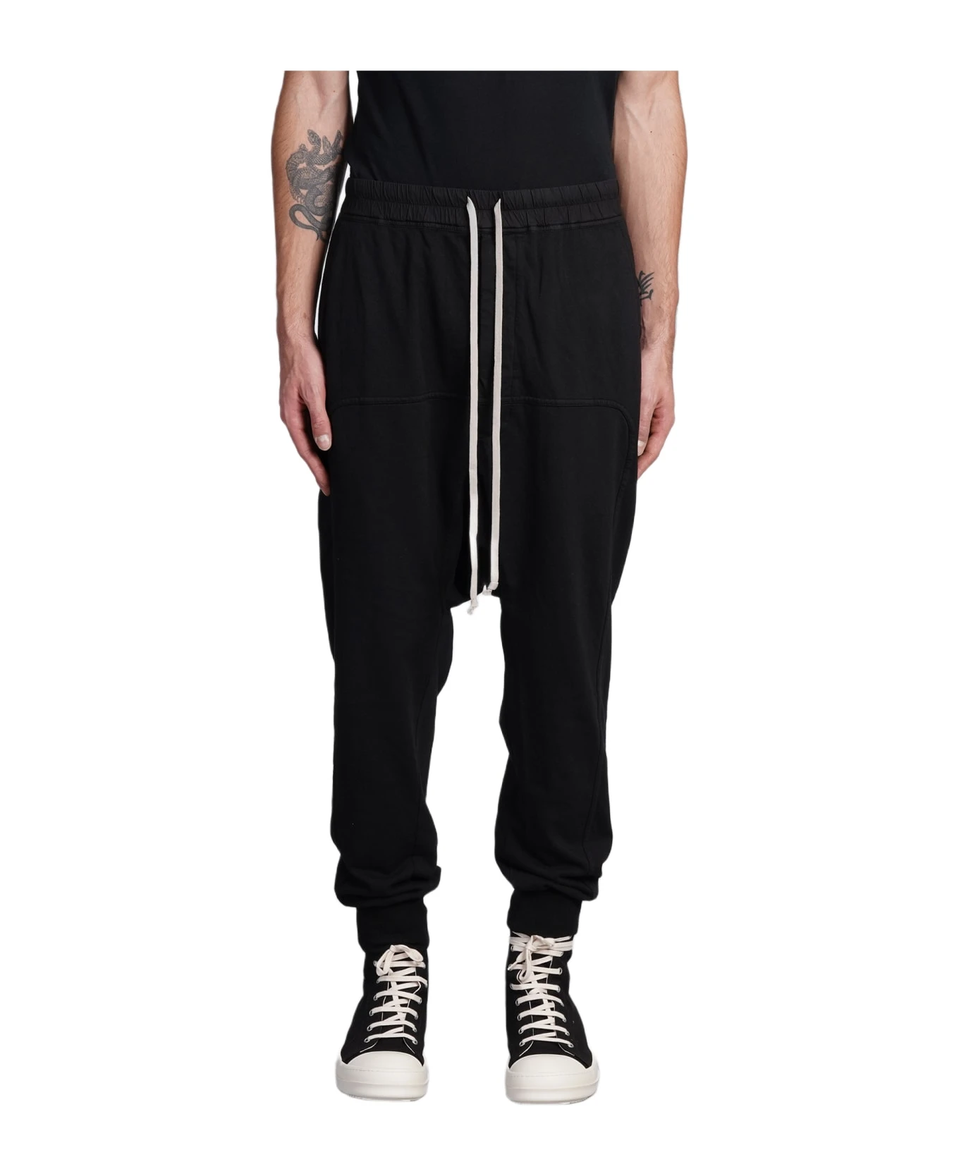 Prisoner drawstring Pants in black cotton, elastic waist, Drawstring laces, pockets, elastic hem, 97% Cottone 3% Spandex, Model is 180 cm and wear a size S