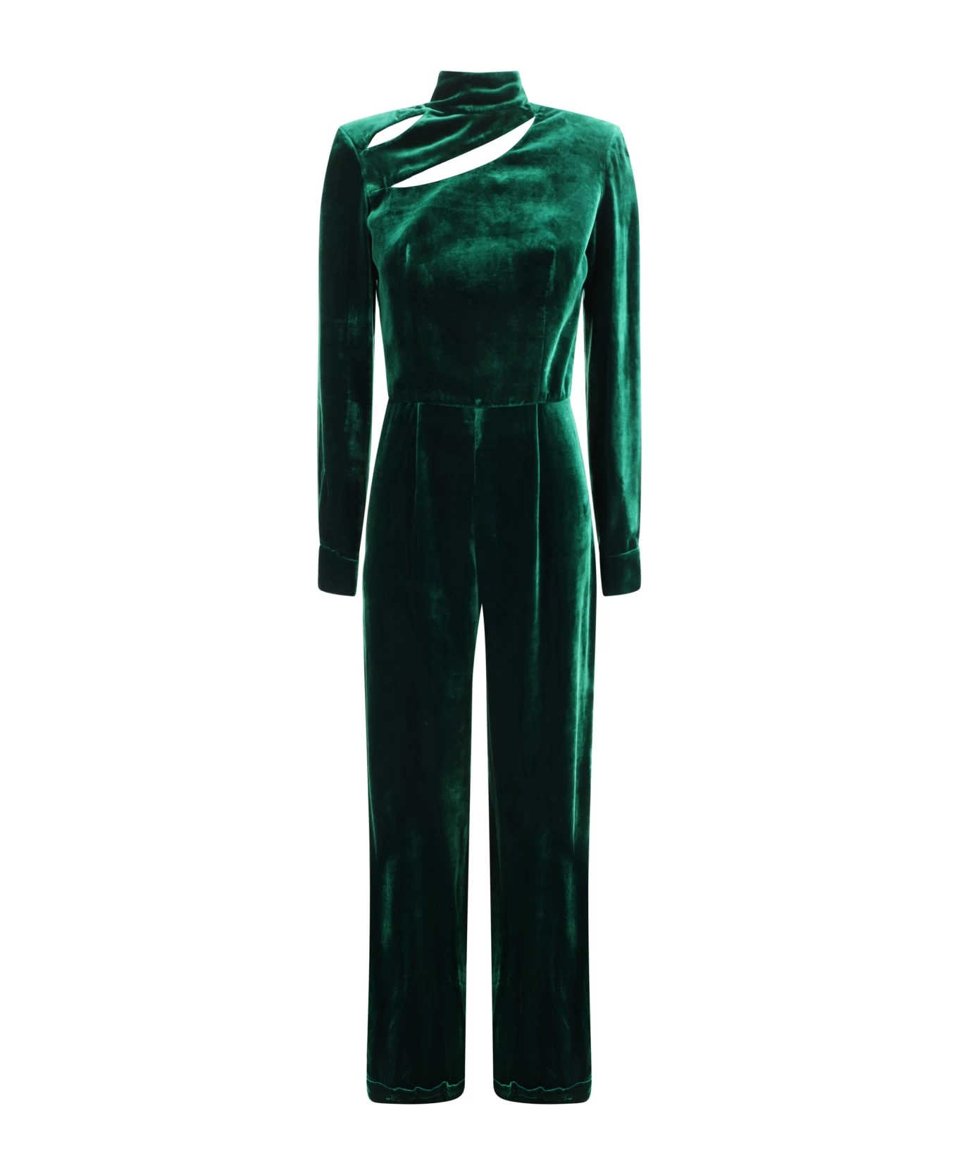 Raquel jumpsuit by raquel diniz, high neck design, back and side zipper closure, monochrome velvet effect design, cut out detailing on front, padded and structured shoulders, adjustable button cuffs, wide back opening, regular fit.