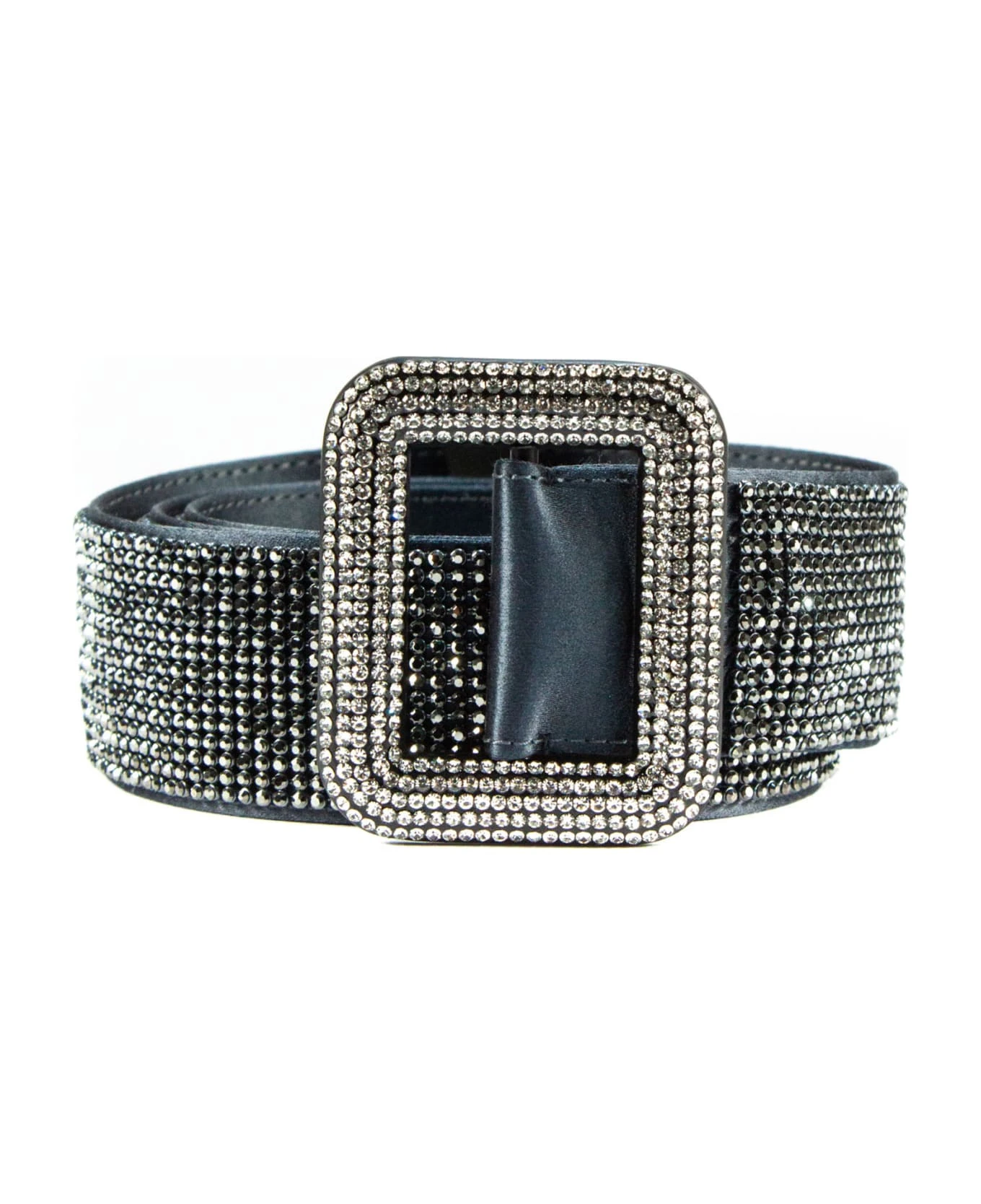 Silver-tone satin crystal-embellished belt, adjustable fit, buckle fastening, total lengt 100 cm, width 4 cm