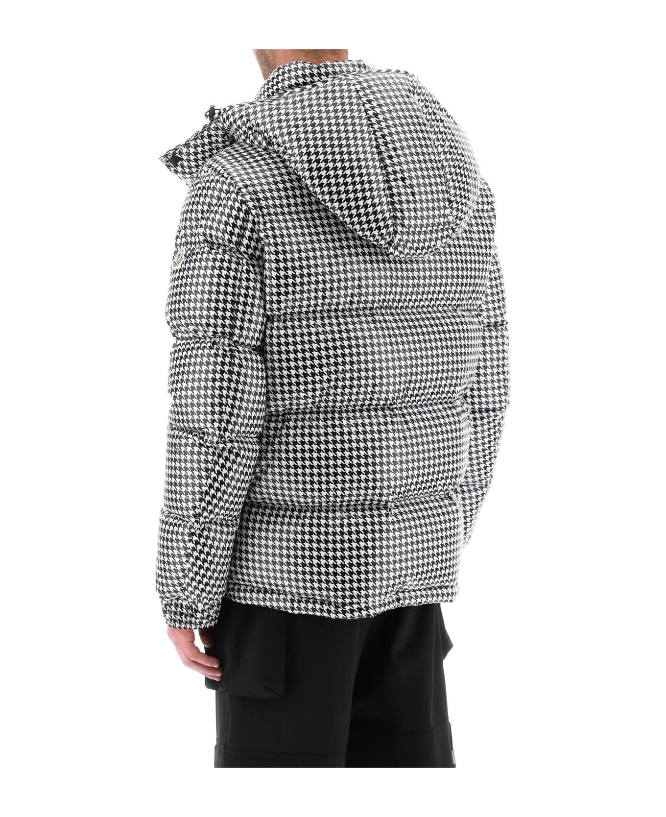 Short quilted jacket from the Moncler x FRGMT collection, part of the Moncler Genius project, made of houndstooth-patterned nylon. Padded with goose down, it features a stand collar with detachable hood, zip-up fastening, adjustable snap cuffs, two slanted zip pockets and one inside pocket. Signature felt logo appliqué on the left sleeve. Regular fit. The model is 187 cm tall and wears a size 3 Moncler.