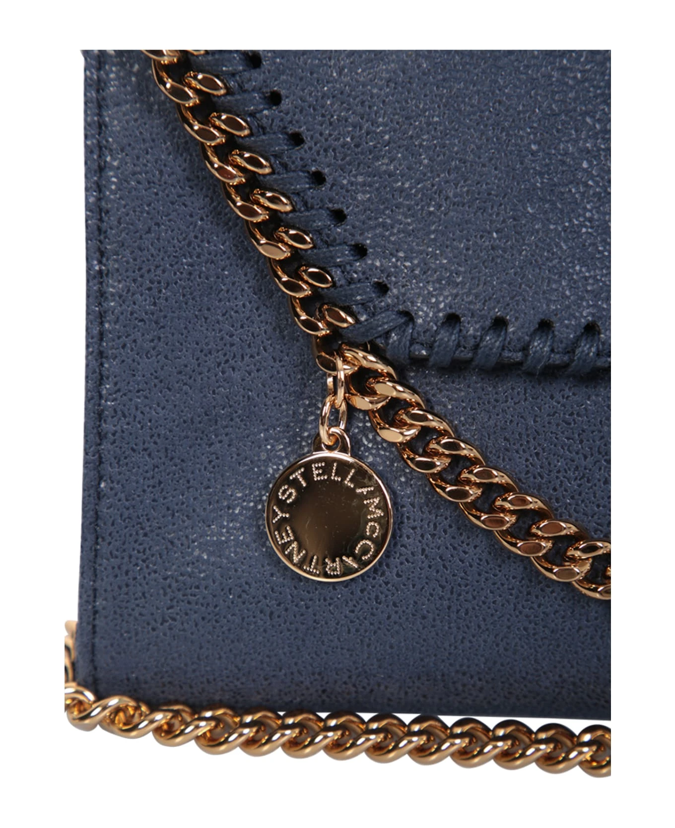 Chain-link shoulder strap. Front flap fastening. Magnetic fastening. Main compartment. Internal slip pocket. Logo charm. Gold-tone hardware. Color. blue