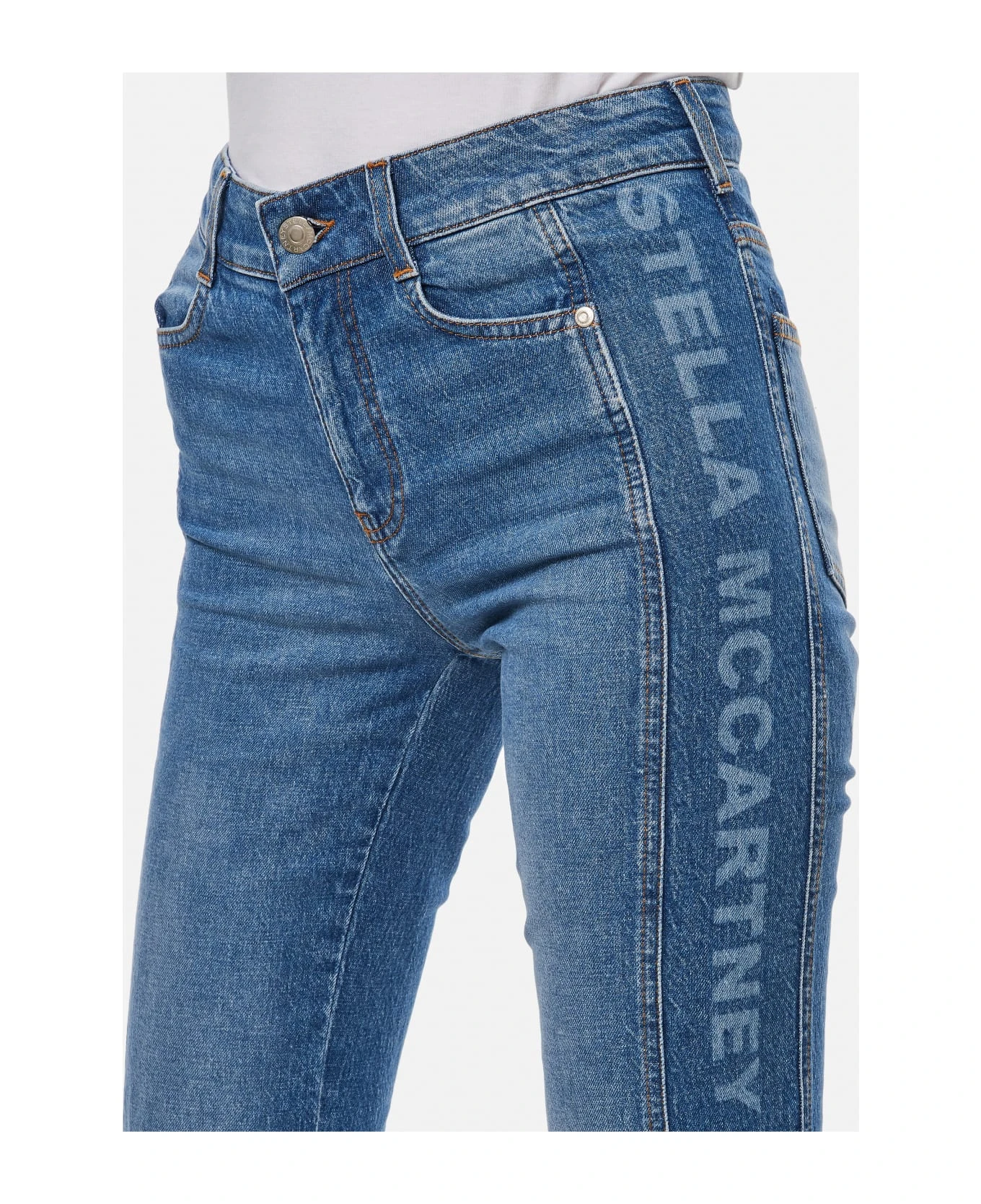 Mid-rise fit. Flared leg. Hidden zip and button closure. Belt loops. 5 pockets. Color: light blue.