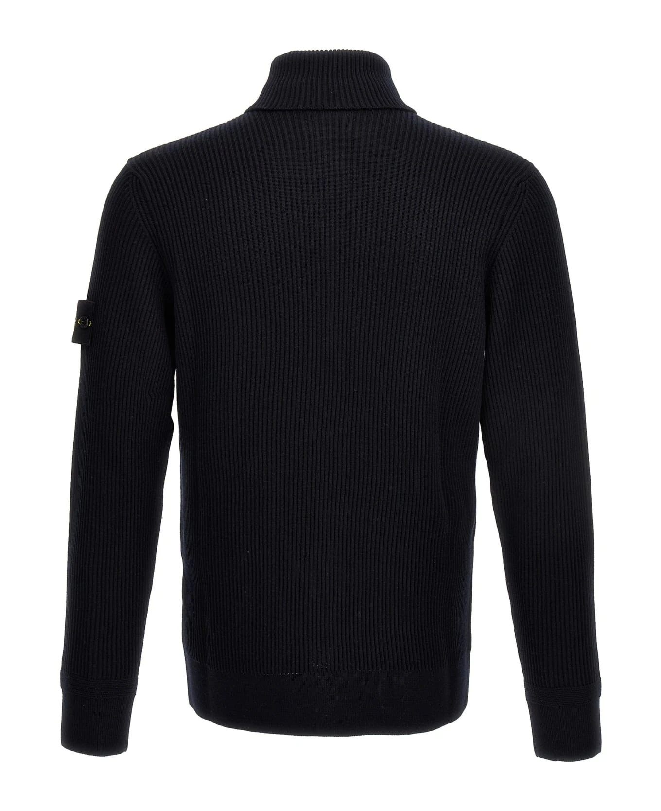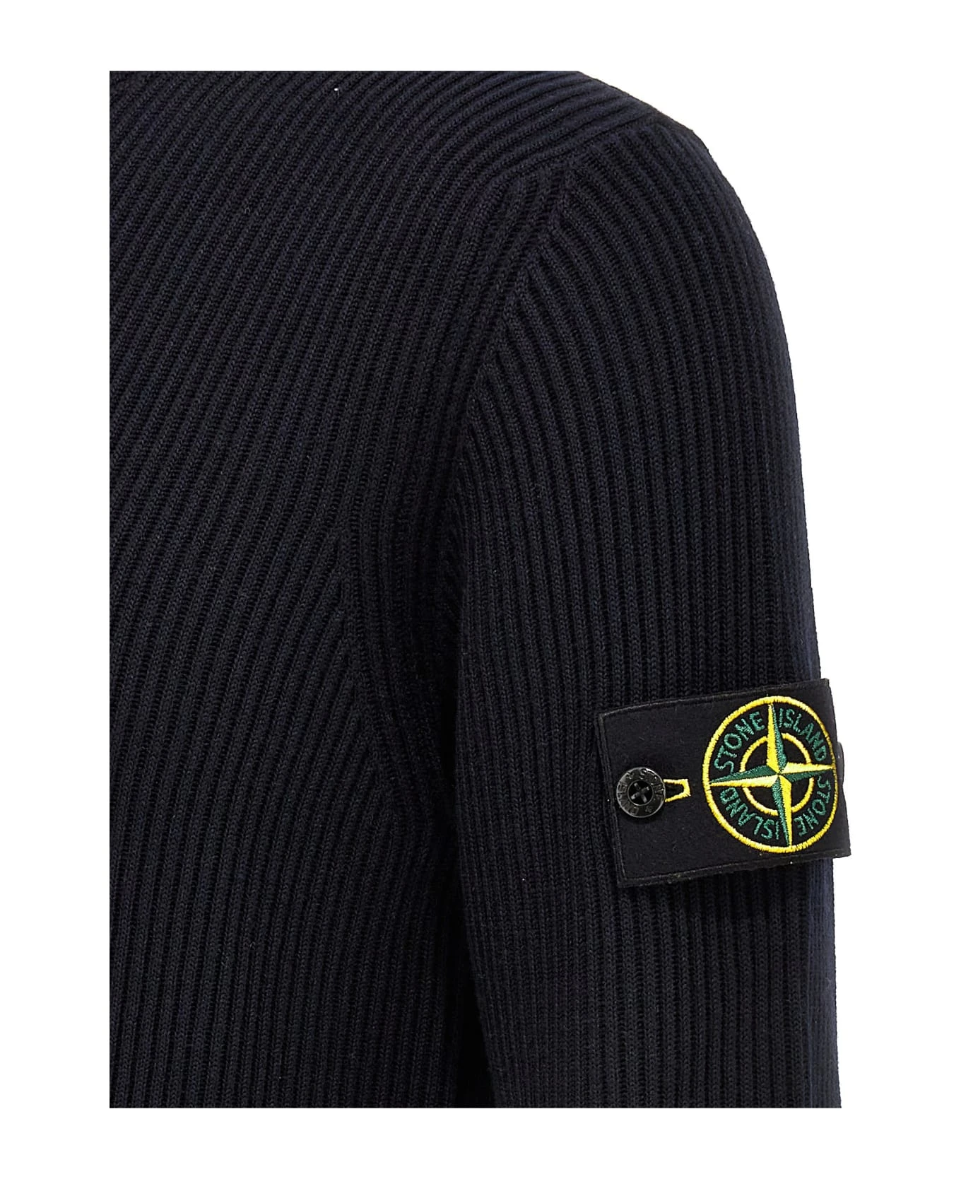 Ribbed wool sweater with turtleneck style with logo badge on the sleeve.