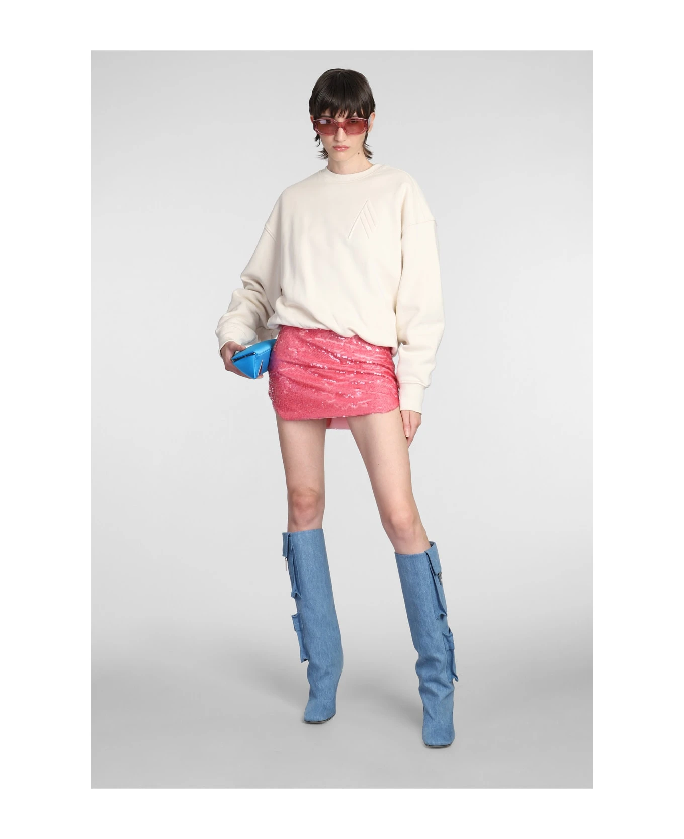 Sweatshirt Sweatshirt in beige wool, round neck, long sleeves, ribbed cuffs and bottom, logo on chest, 95% Cotton 5% Elastane, Made in Portugal, model is 180 cm and wears size 40