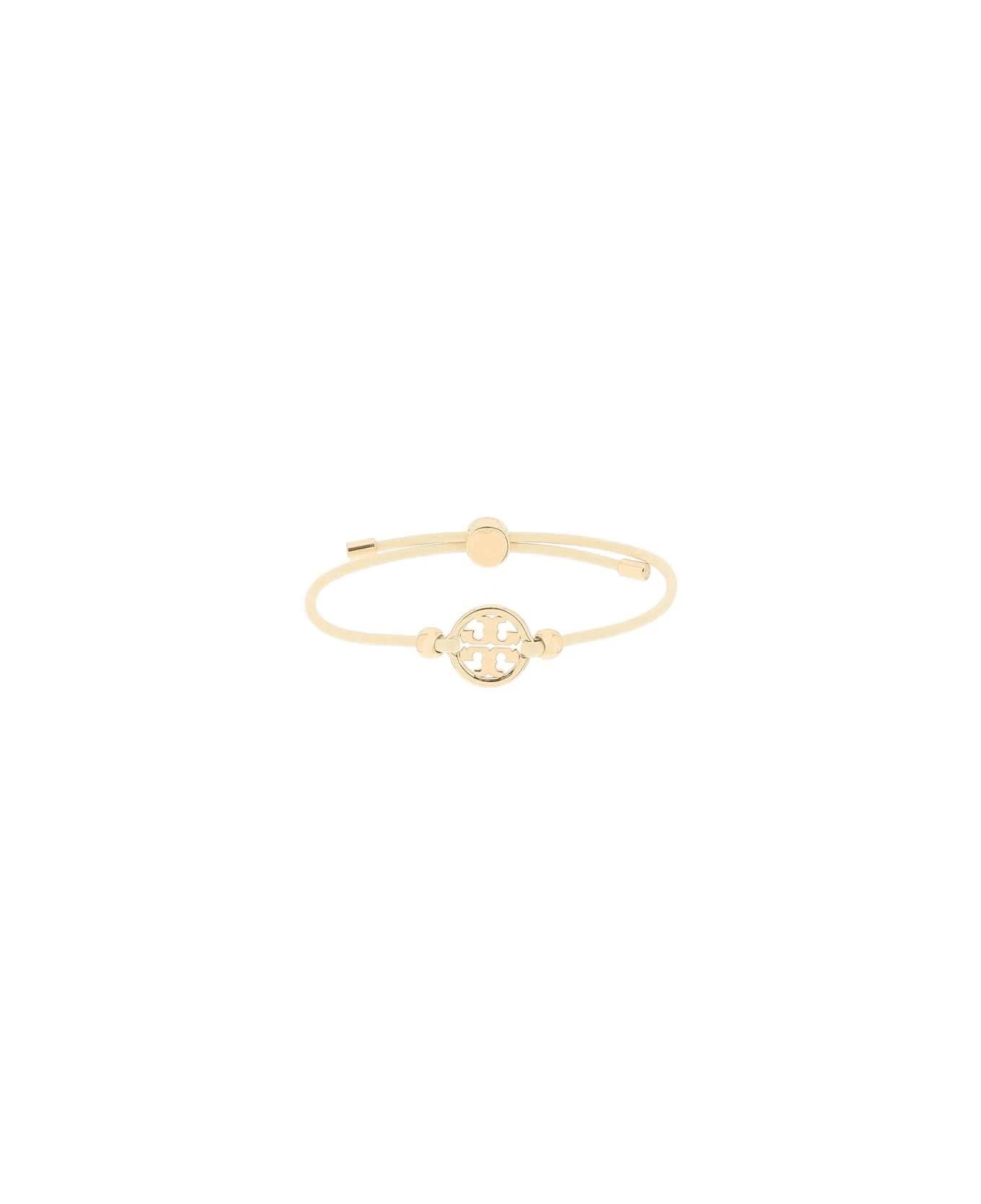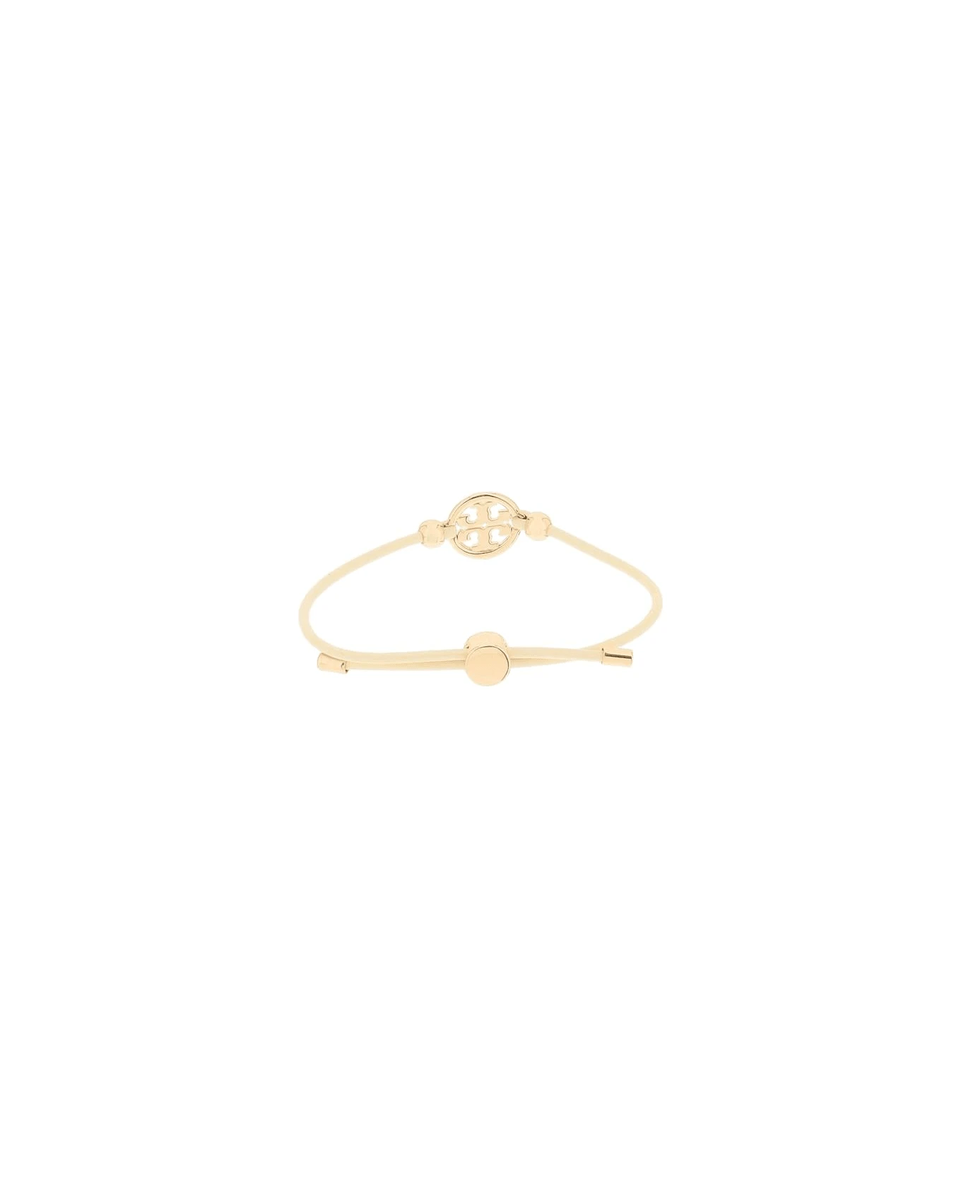 Tory Burch Miller slider bracelet crafted in leather with gold-finished brass Double T detail. One size.