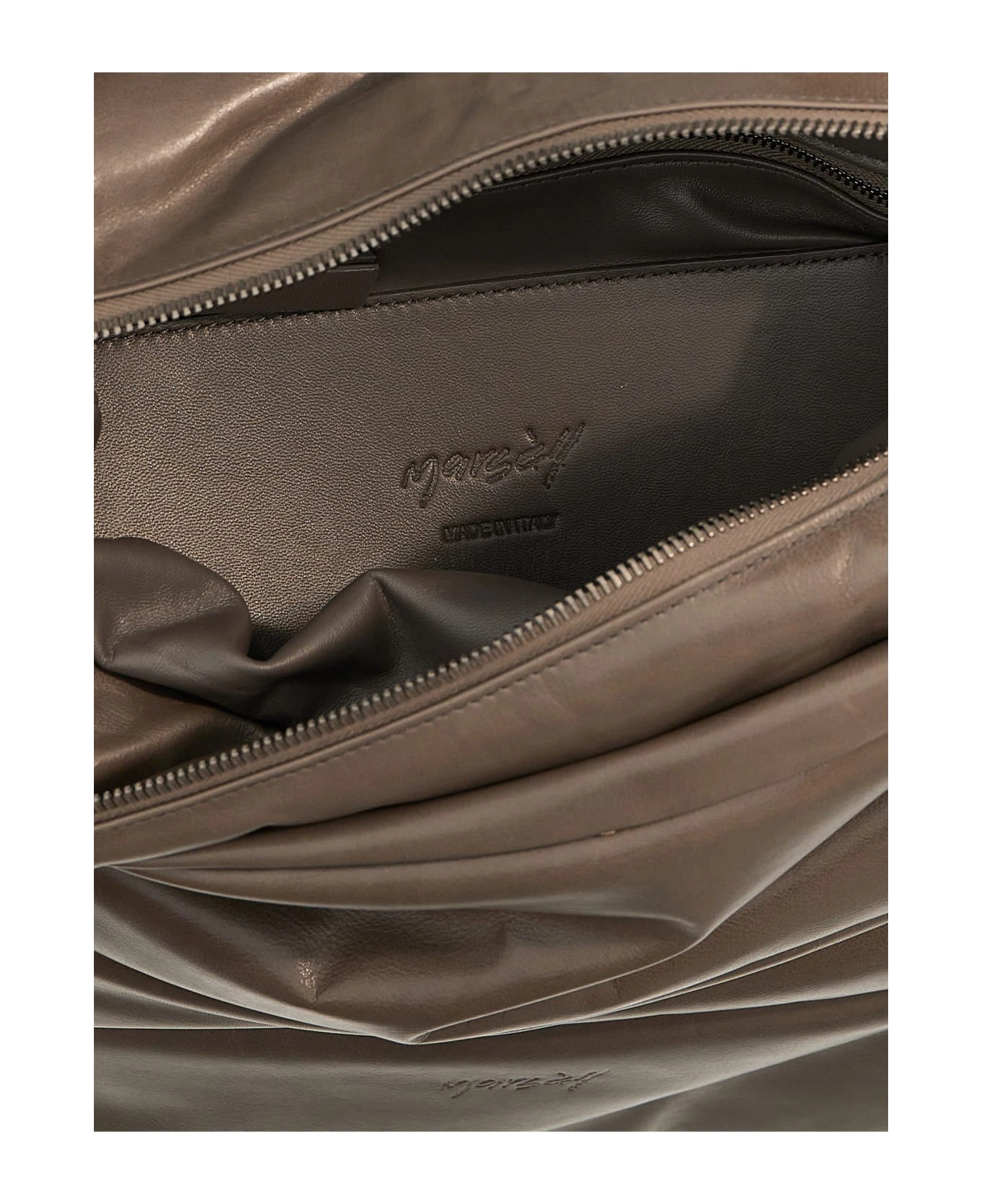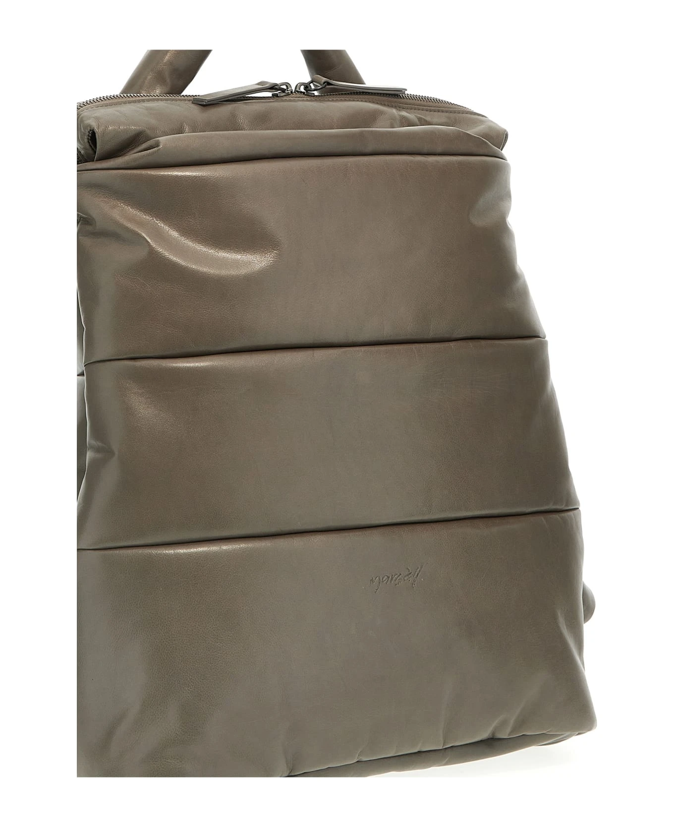 ‘Trapuntata’ matelassé leather backpack with zip closure and adjustable shoulder straps.