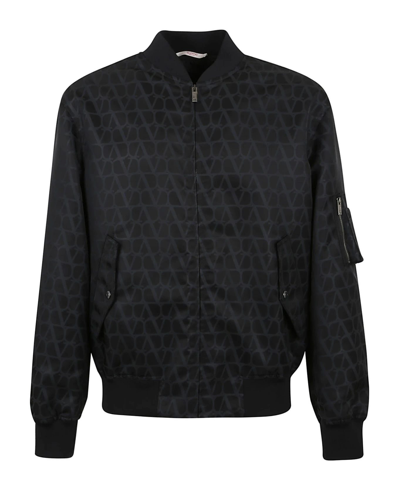 All-over Toile Iconographe print nylon bomber BY VALENTINO GARAVANI. Long sleeves; front zip closure; collar, bottom and cuffs with ribbed elastic; two side slanted pockets with flap and button and small pocket with zip on the sleeve. Regular fit design.