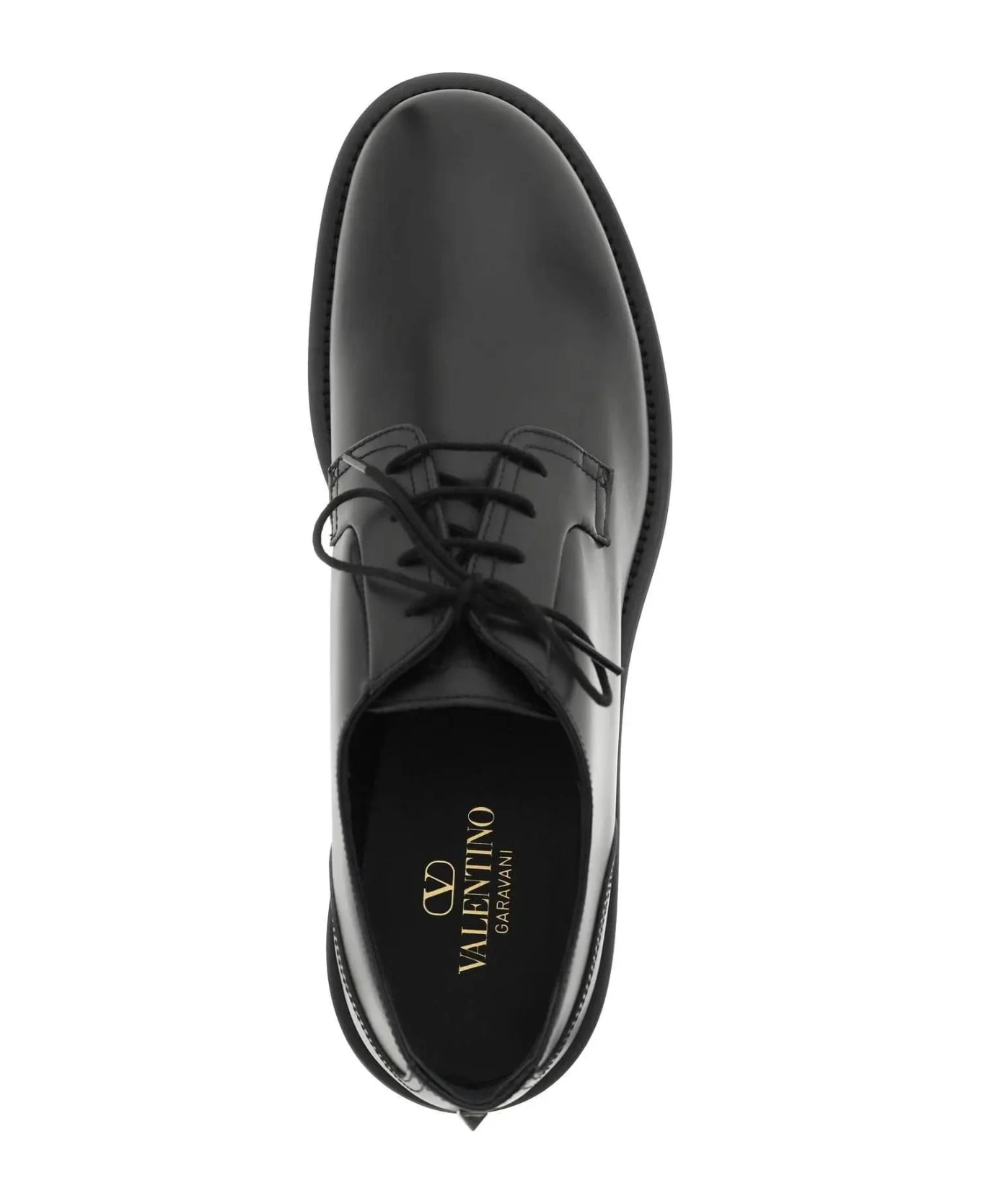 Valentino Garavani Rockstud Essential derby shoes crafted in leather and embellished with the iconic tone-on-tone stud applied to the back. Leather lining and rubber sole.