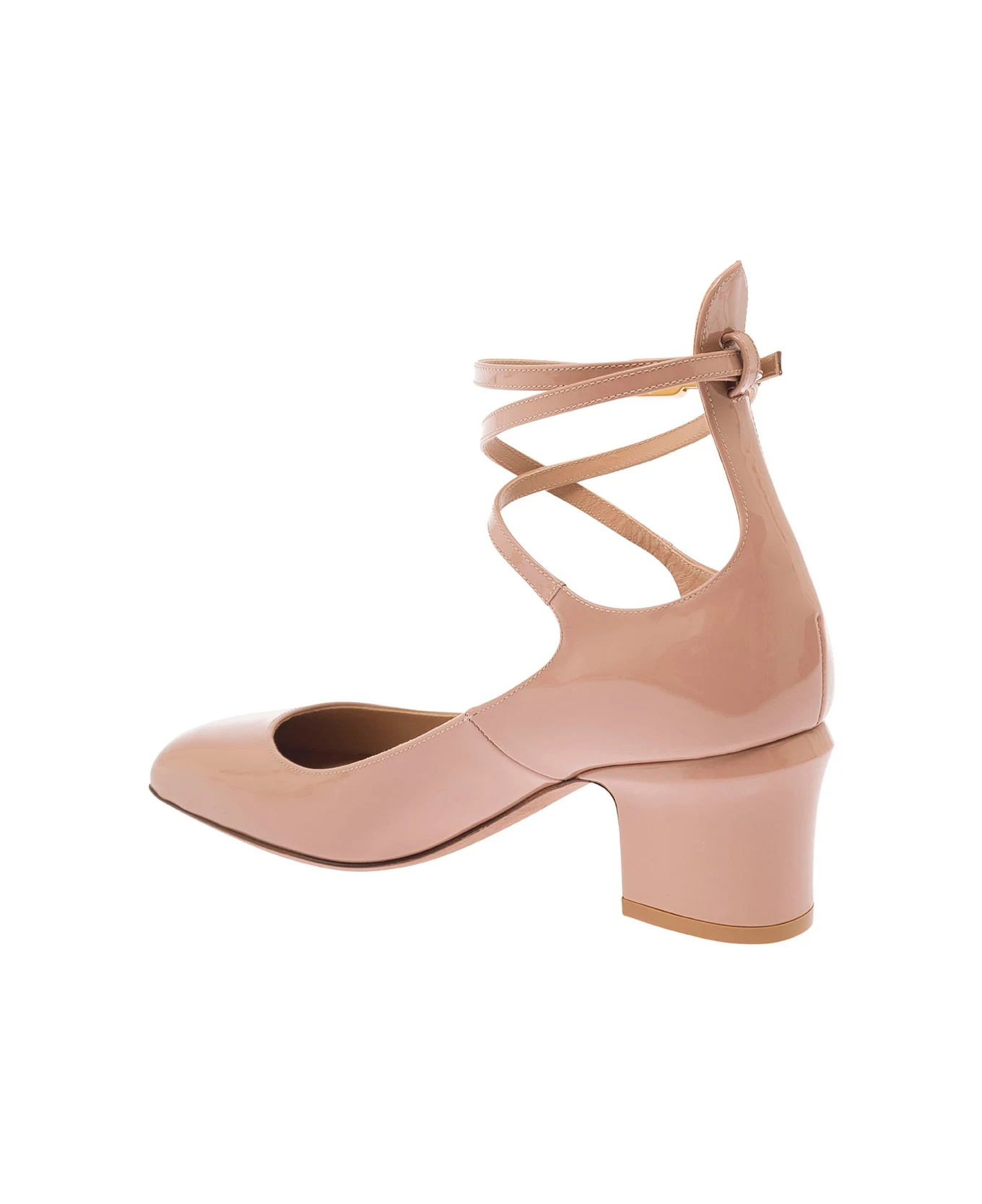 Pink ‘tan-go’ Bege Décolleté With V-logo Buckle In Patent Leather Woman from Valentino Garavani
