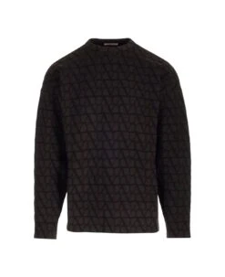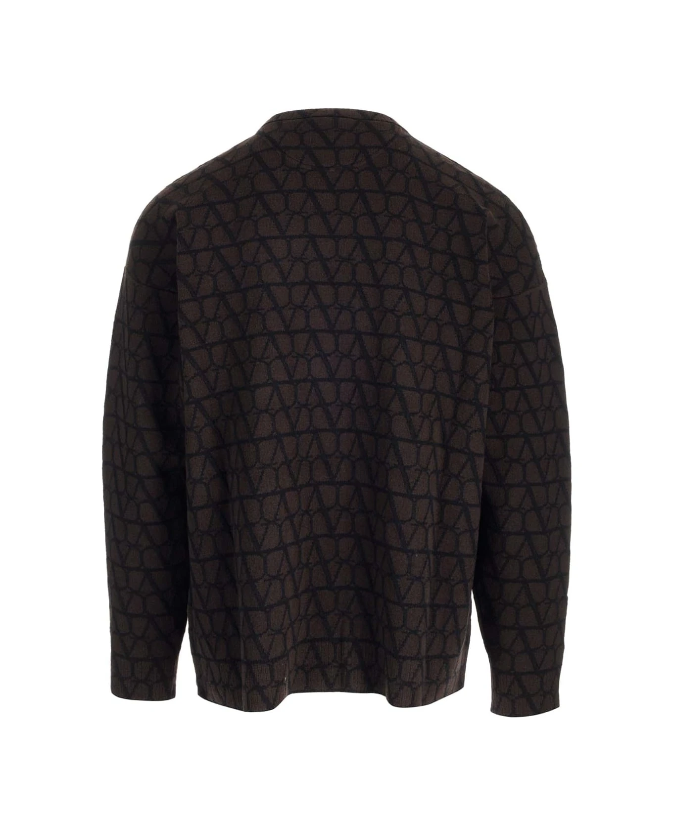 Valentino Garavani crew neck sweater in ebony and black Toile Iconographe motif in wool